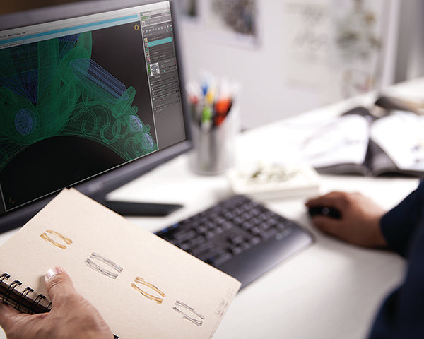 We'll sketch out ideas, develop a digital design and print a wax model, with your input and approval along every step of the way until your jewelry is perfect.