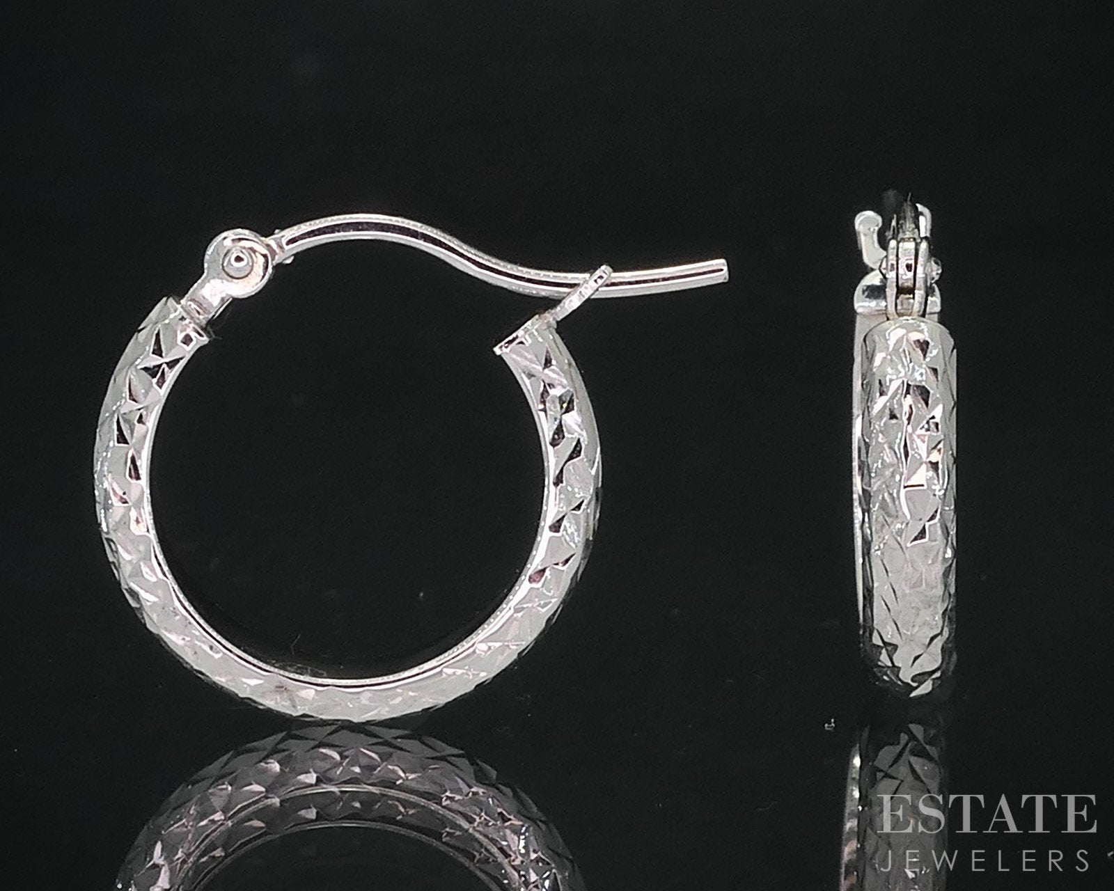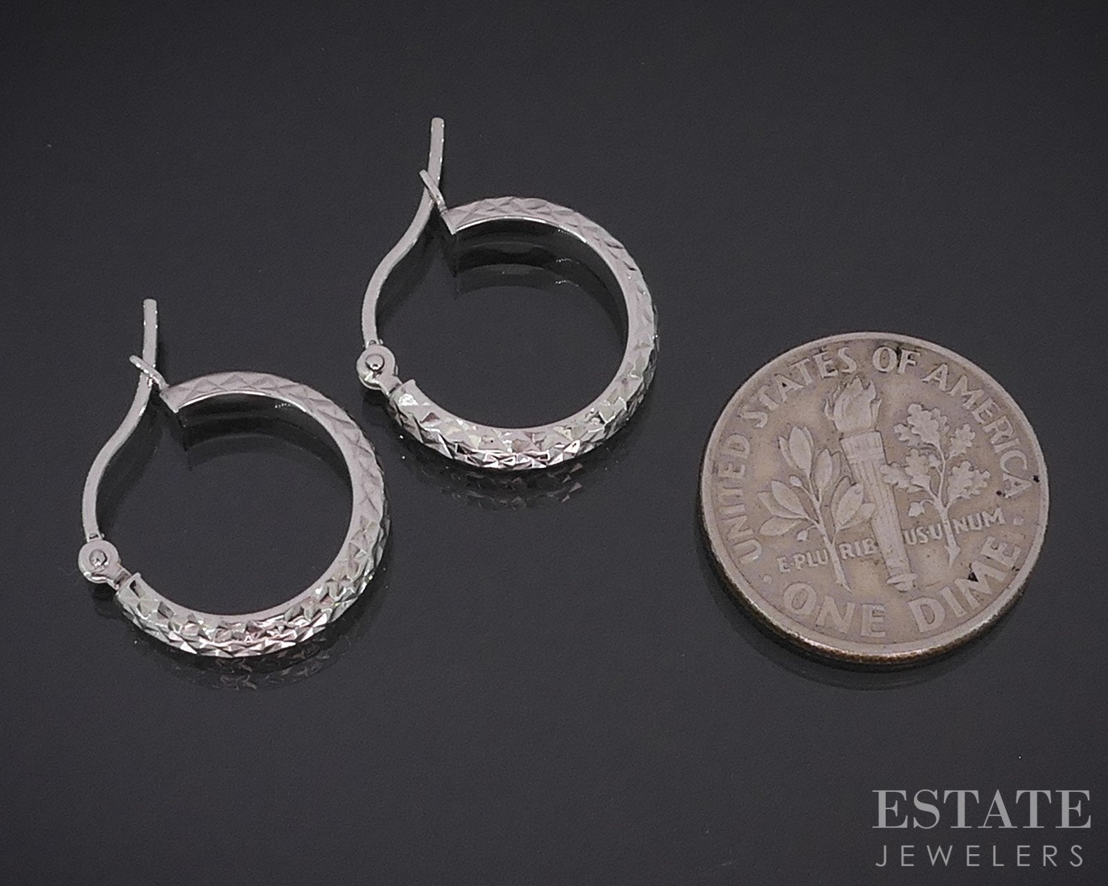 10k White Gold Diamond Cut Hoop Ladies Earrings 0.9g p78514