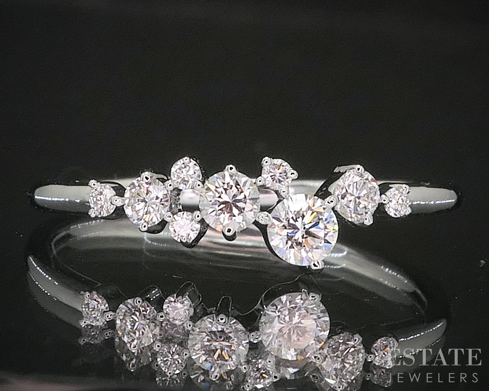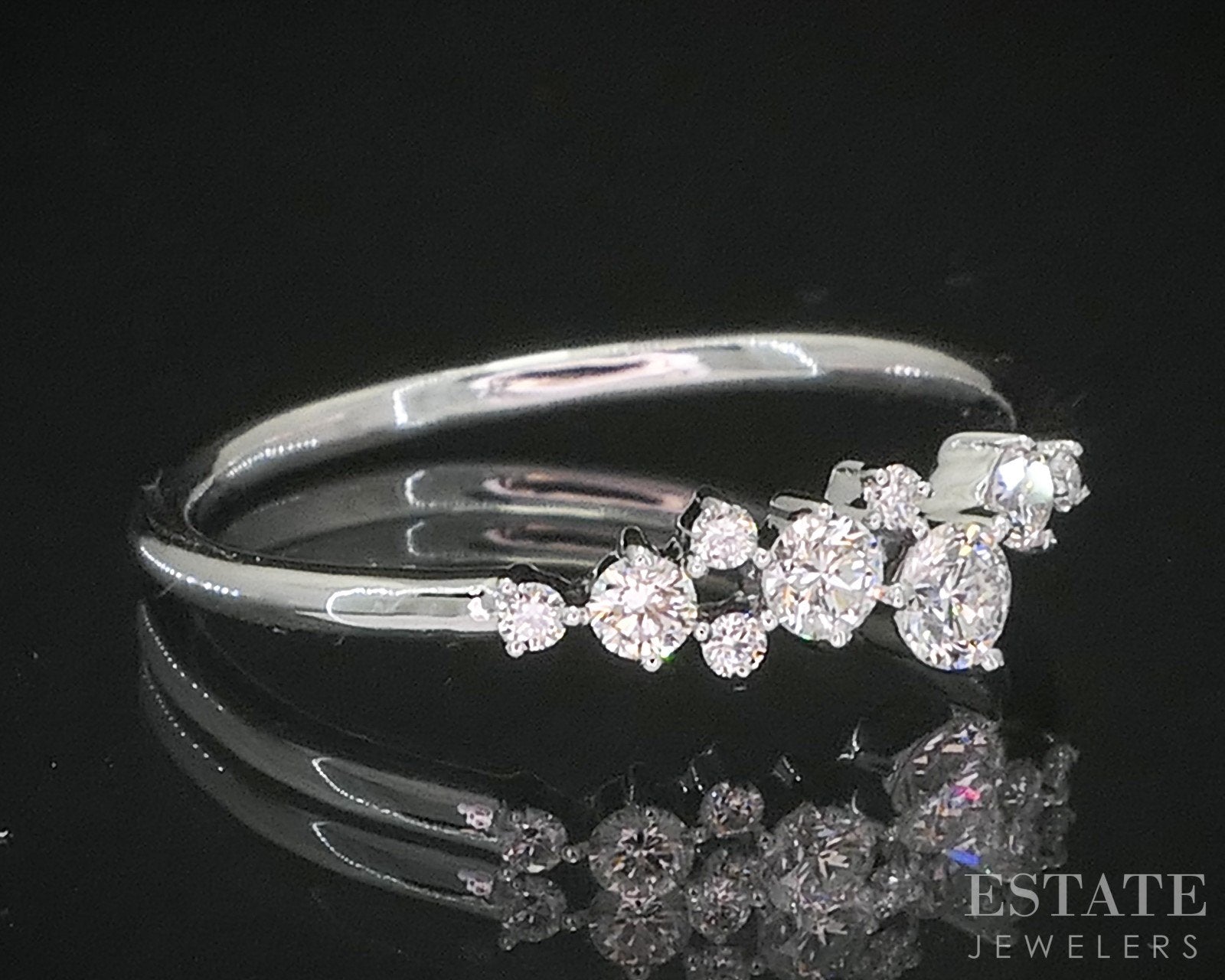 Additional Info: Sparkling ladies band ring with Diamonds set in a spaced out "scattered" design. Look for the matching yellow gold band in our store!