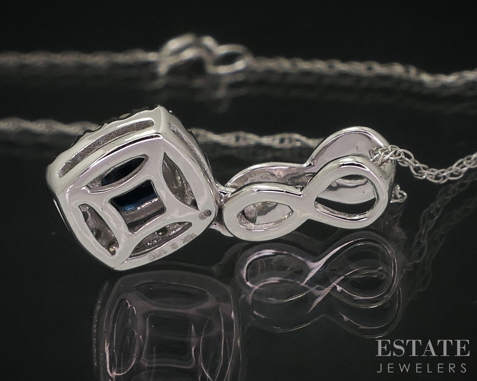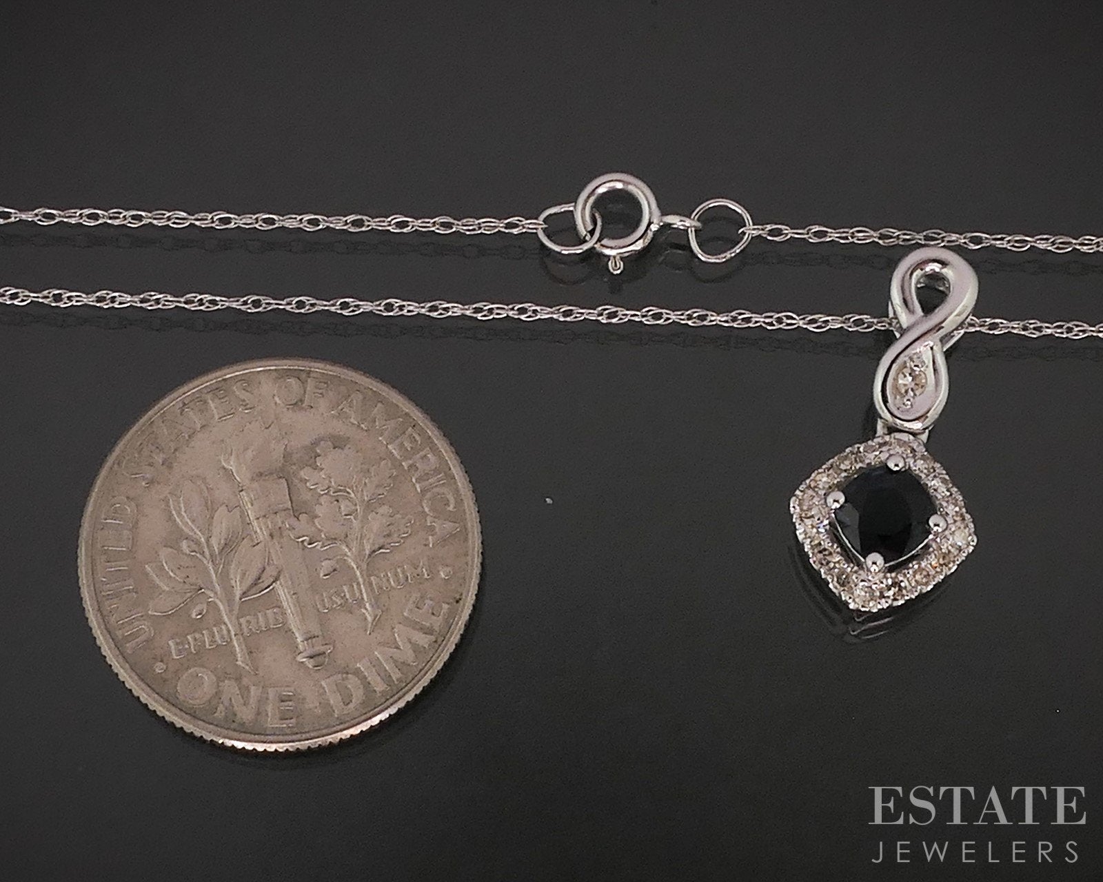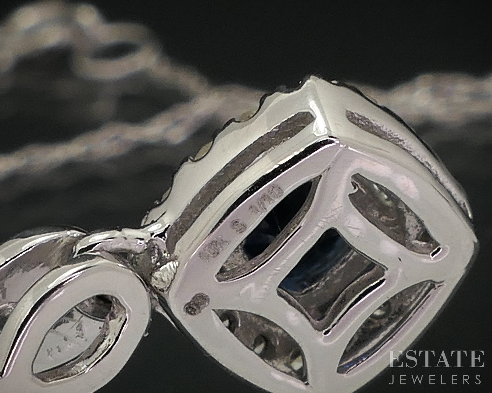 10k White Gold Natural Blue Sapphire & Diamond Ladies Necklace 1.3g 18"L i18464