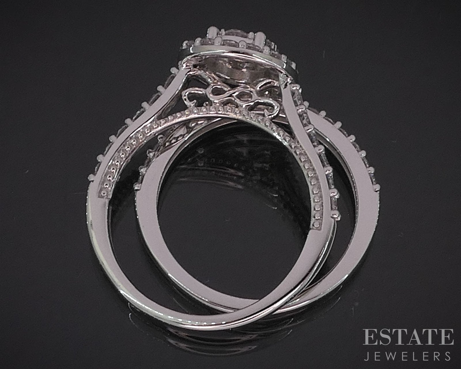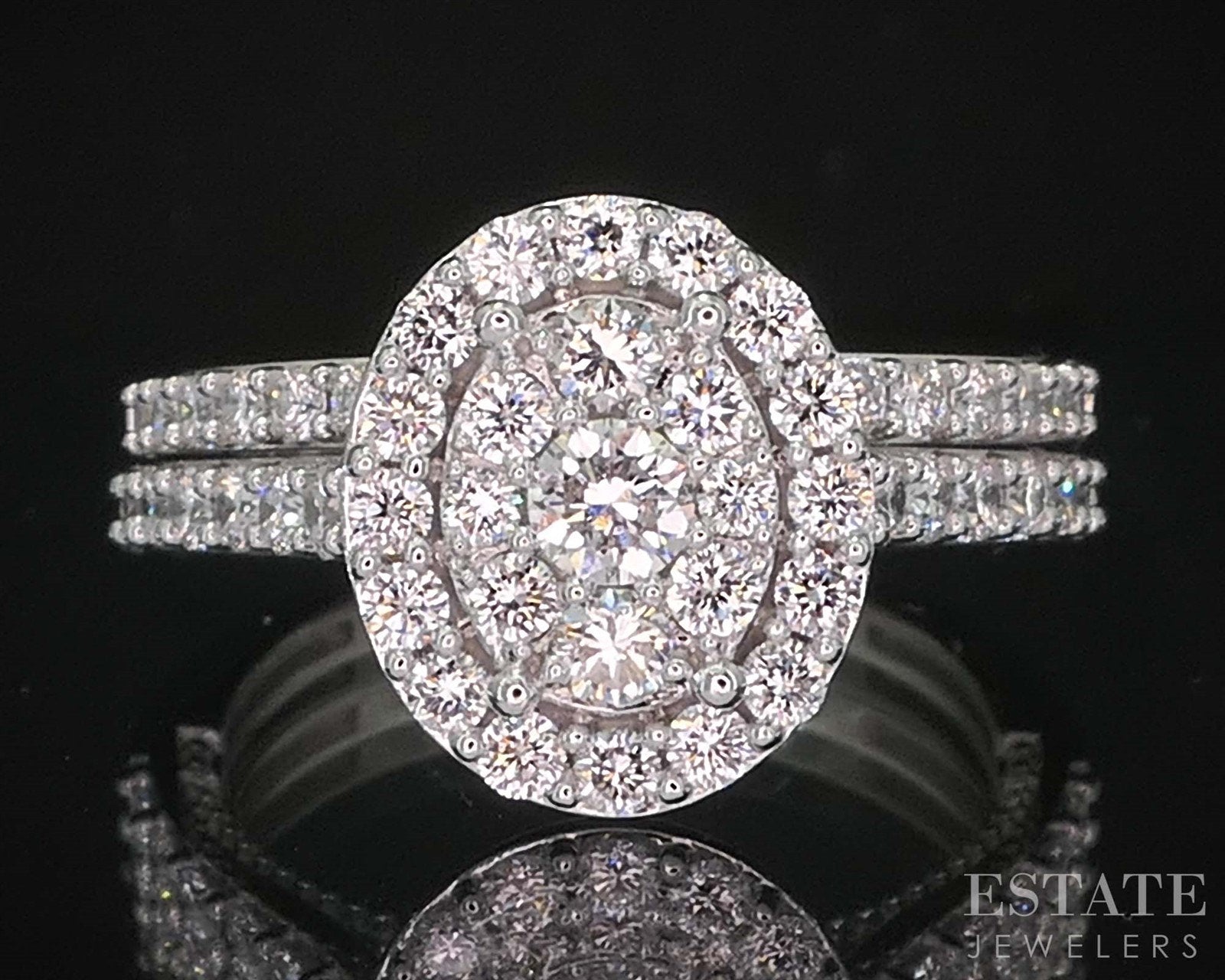 10k White Gold Oval Lab Created .88ctw Diamond Cluster Wedding Set 4.8g i19986b