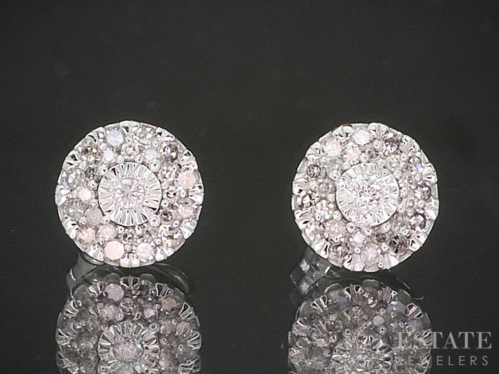 10k White Gold Round Natural .15ctw Diamond Cluster Stud Earrings 1.4g p18144b
