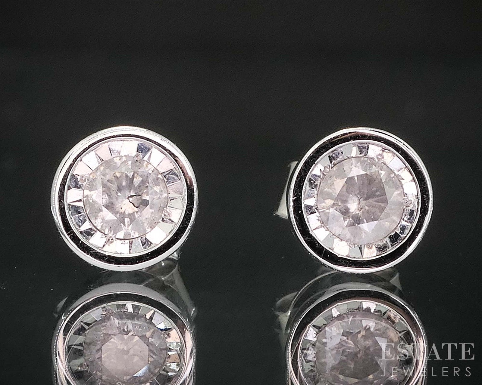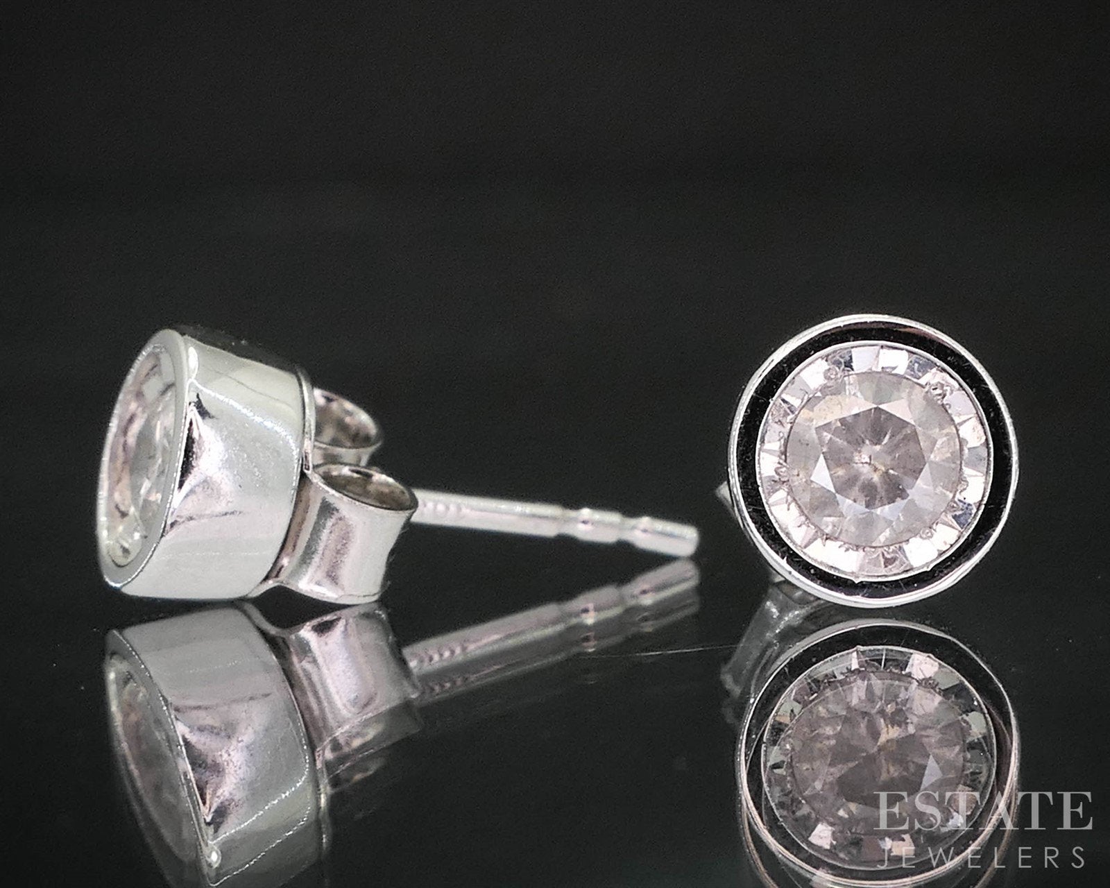 10k White Gold Round Natural .33ctw Diamond Bezel Stud Earrings 1.5g i19850b
