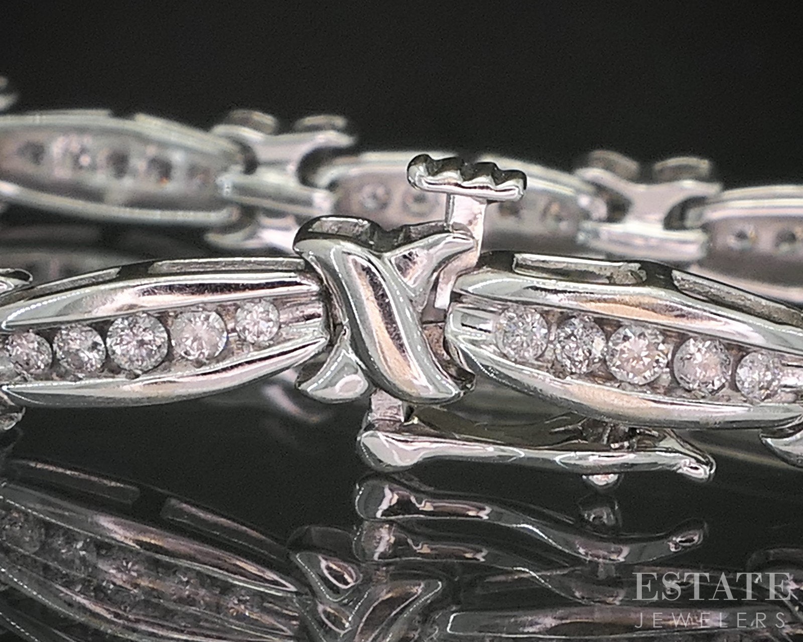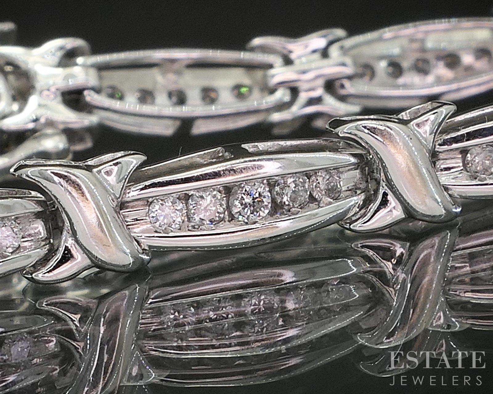 10k White Gold XOXO Natural .50ctw Diamond Tennis Bracelet 8.7g 7.25"L i20174b
