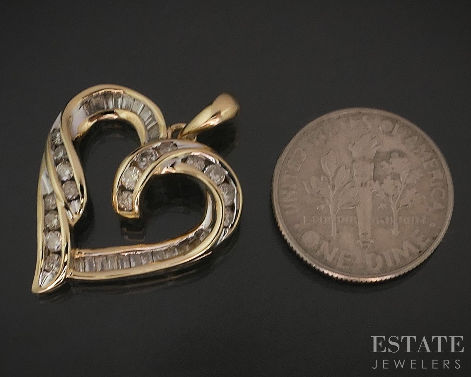10k Yellow Gold Natural .75ctw Diamond Open Heart Ladies Pendant 3.2g i18224b