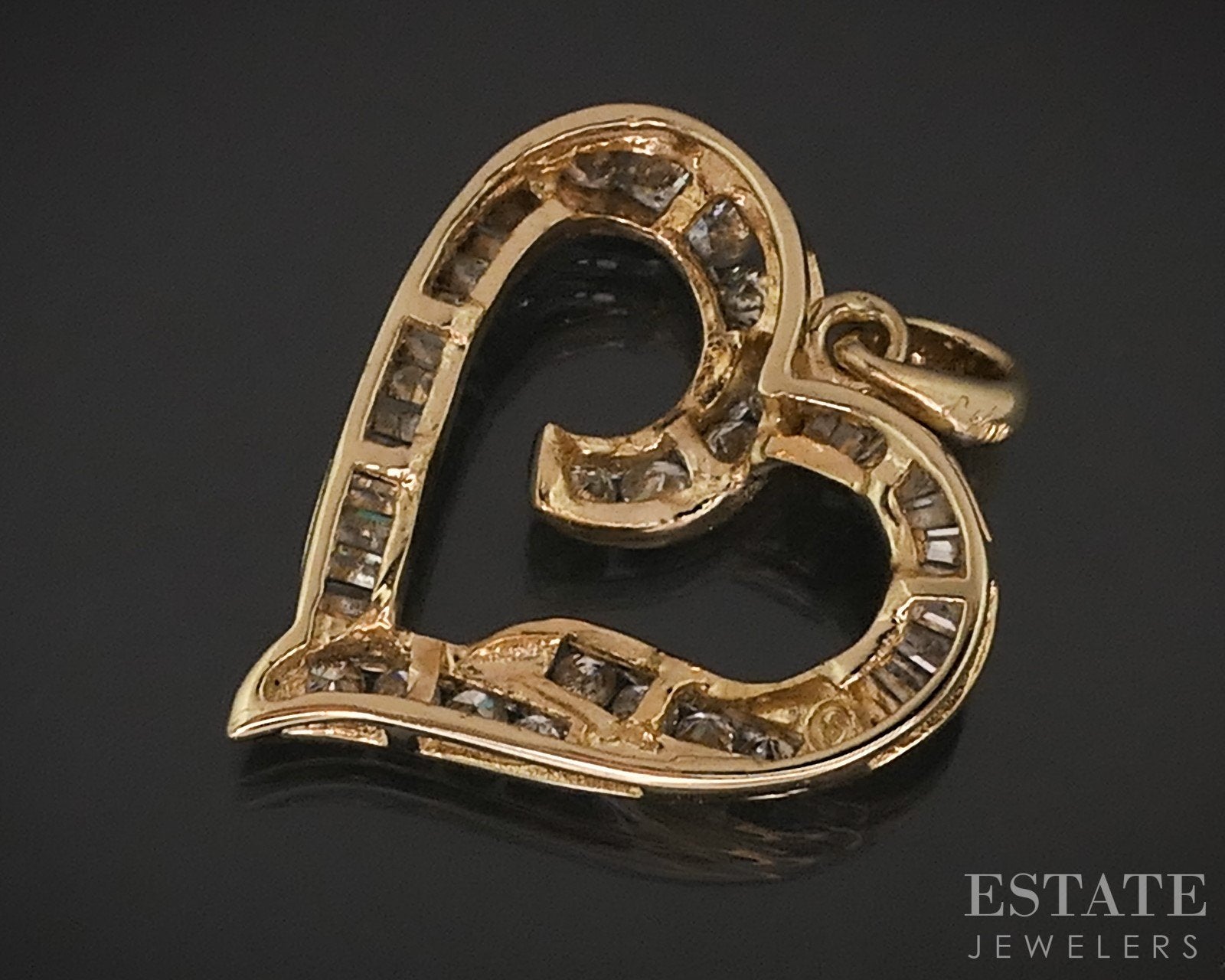 Additional Info: Lovely ladies open heart pendant with sparkling Diamonds channel set all around it.