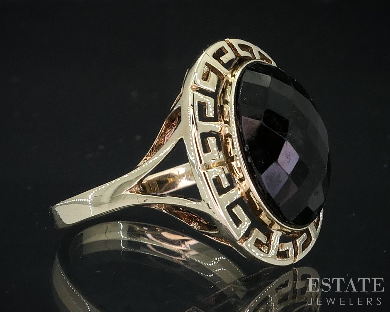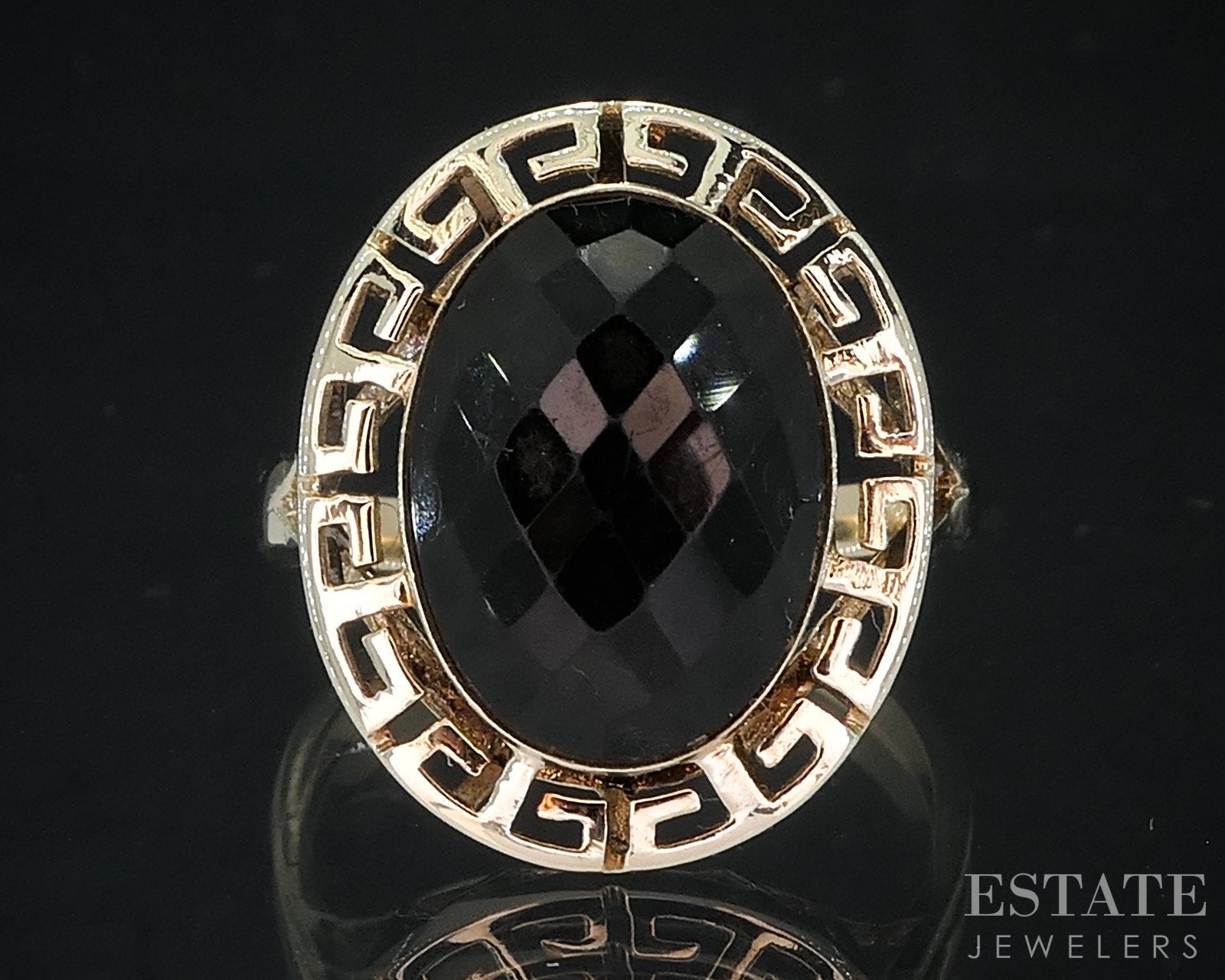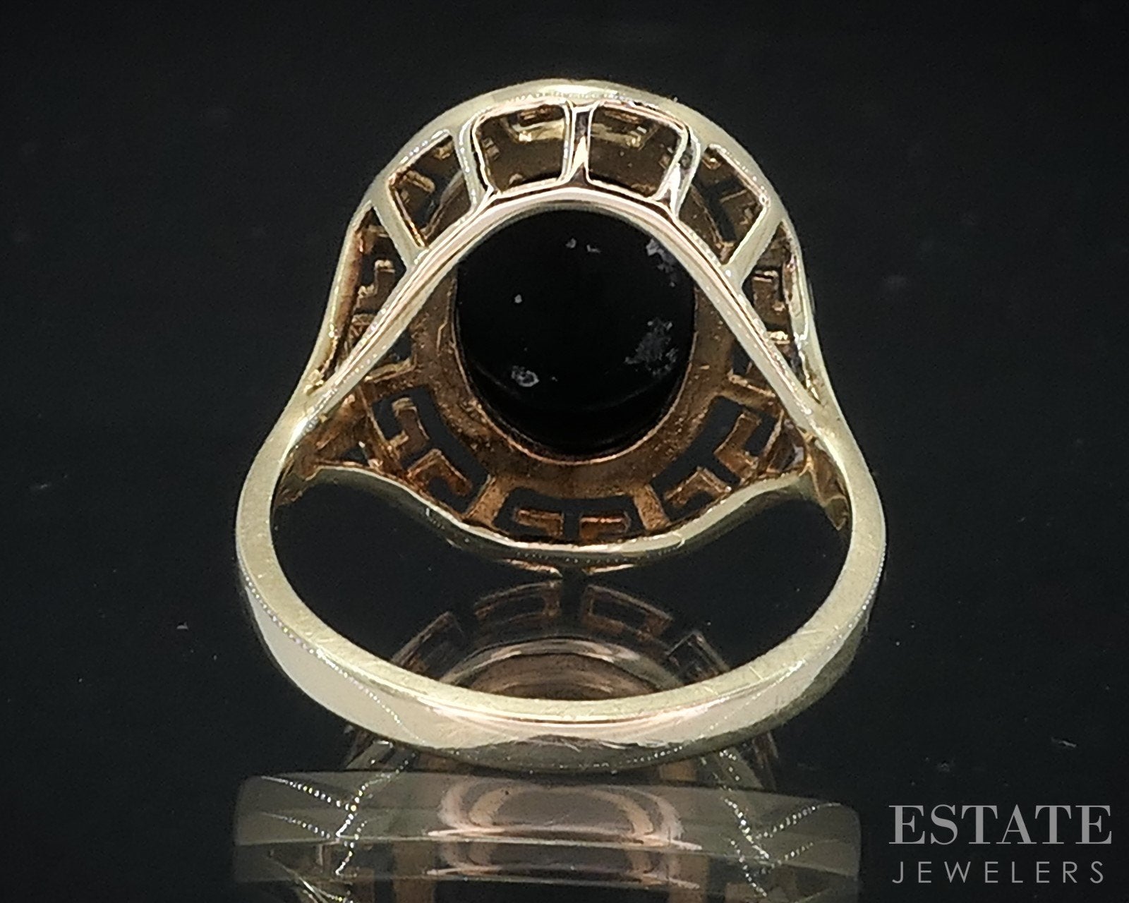 10k Yellow Gold Natural Black Onyx Greek Key Ladies Ring 3.7g i18693b
