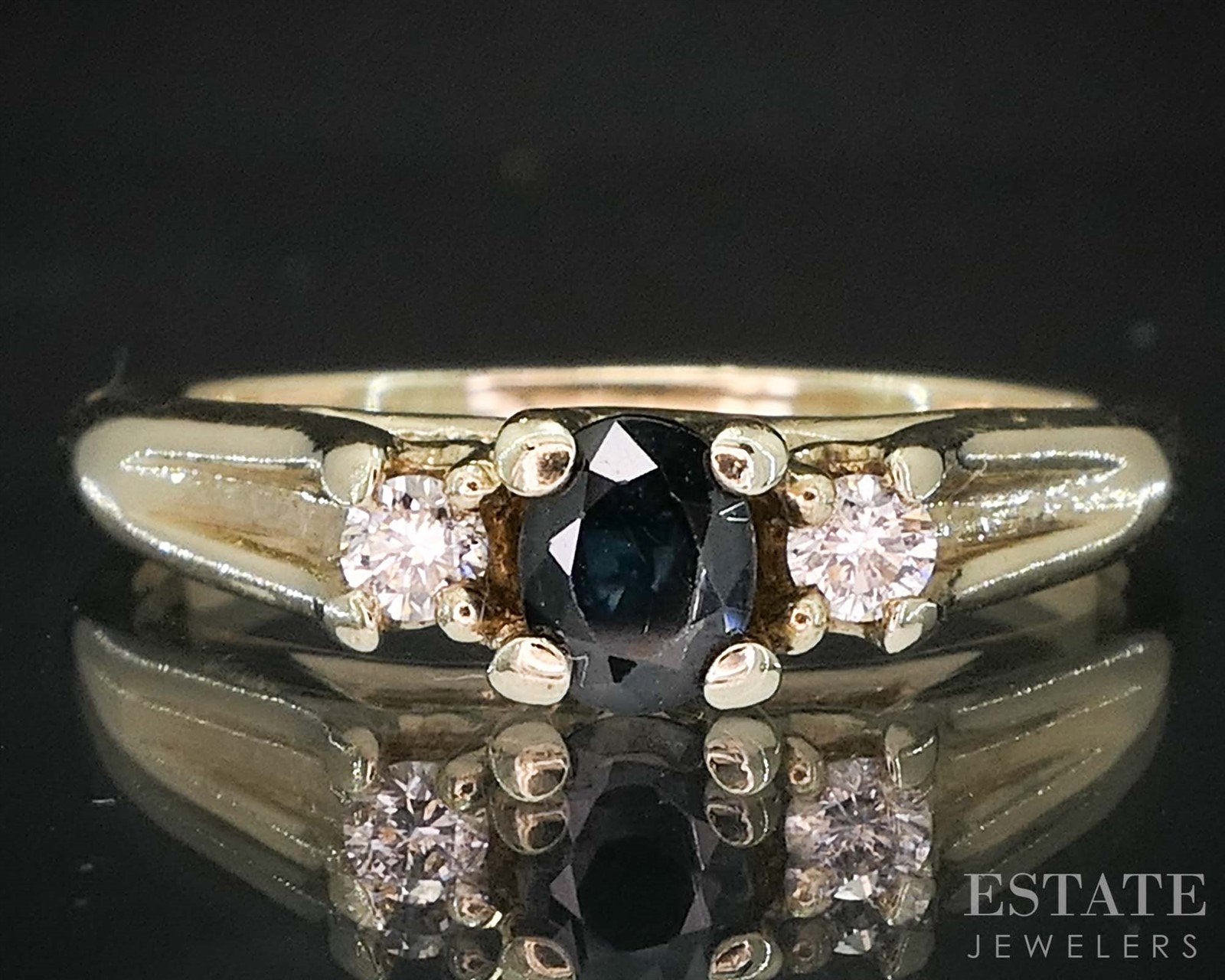 10k Yellow Gold Natural Blue Sapphire & Diamond Ladies Ring 3.2g i19839b