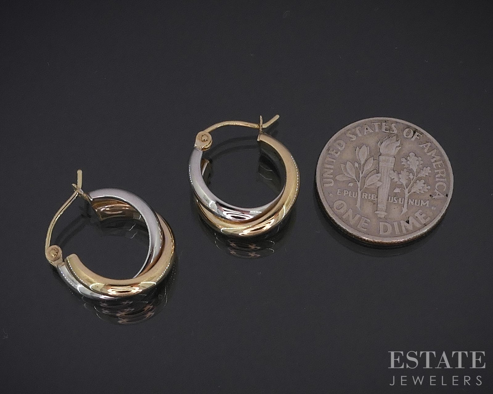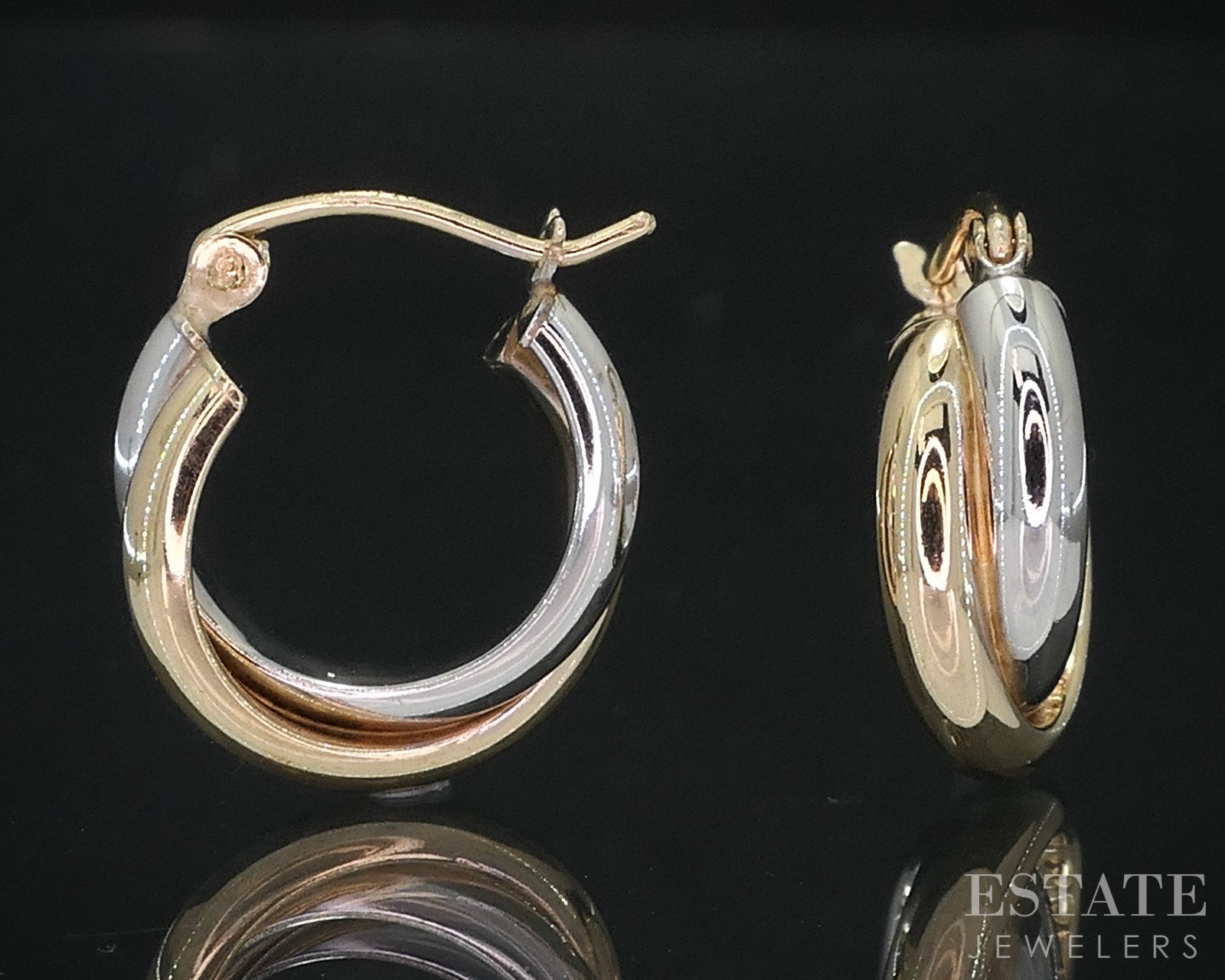 10k Yellow & White Gold Crossover Hoop Ladies Earrings 1.5g i19059