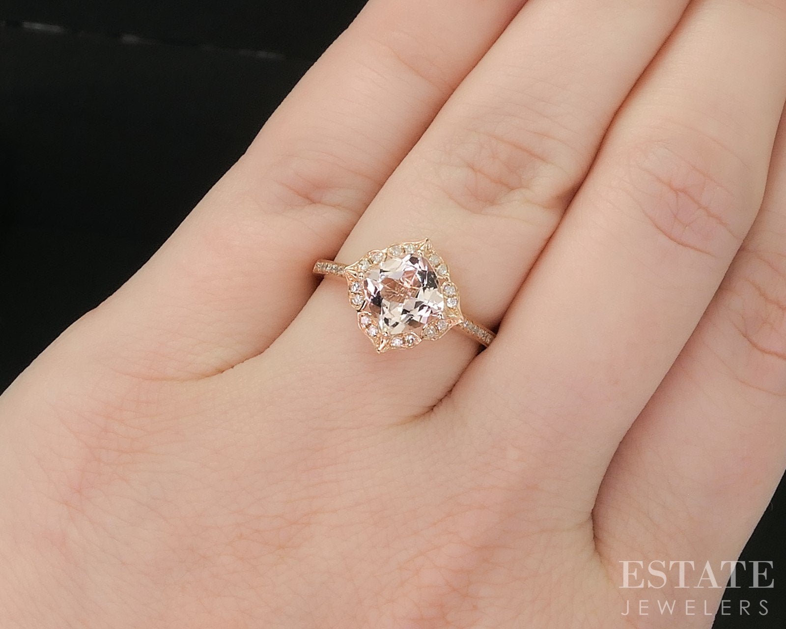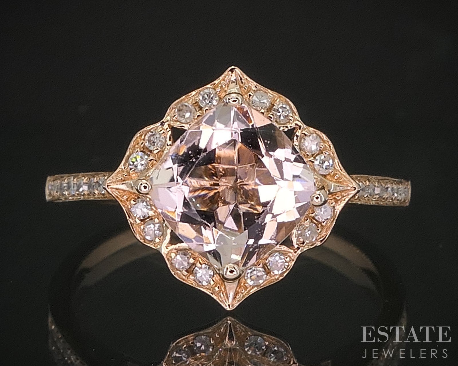 14k Rose Gold Cushion Natural Morganite & Diamond Halo Ladies Ring 1.9g i20414