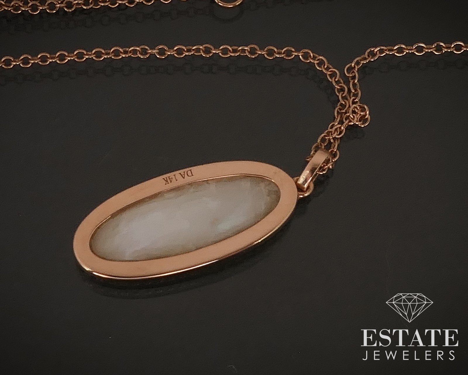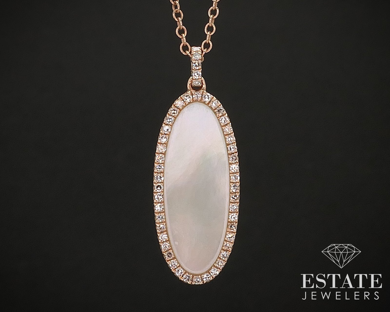 14k Rose Gold Mother of Pearl & Diamond Ladies Necklace 2.7g 19"L i17479