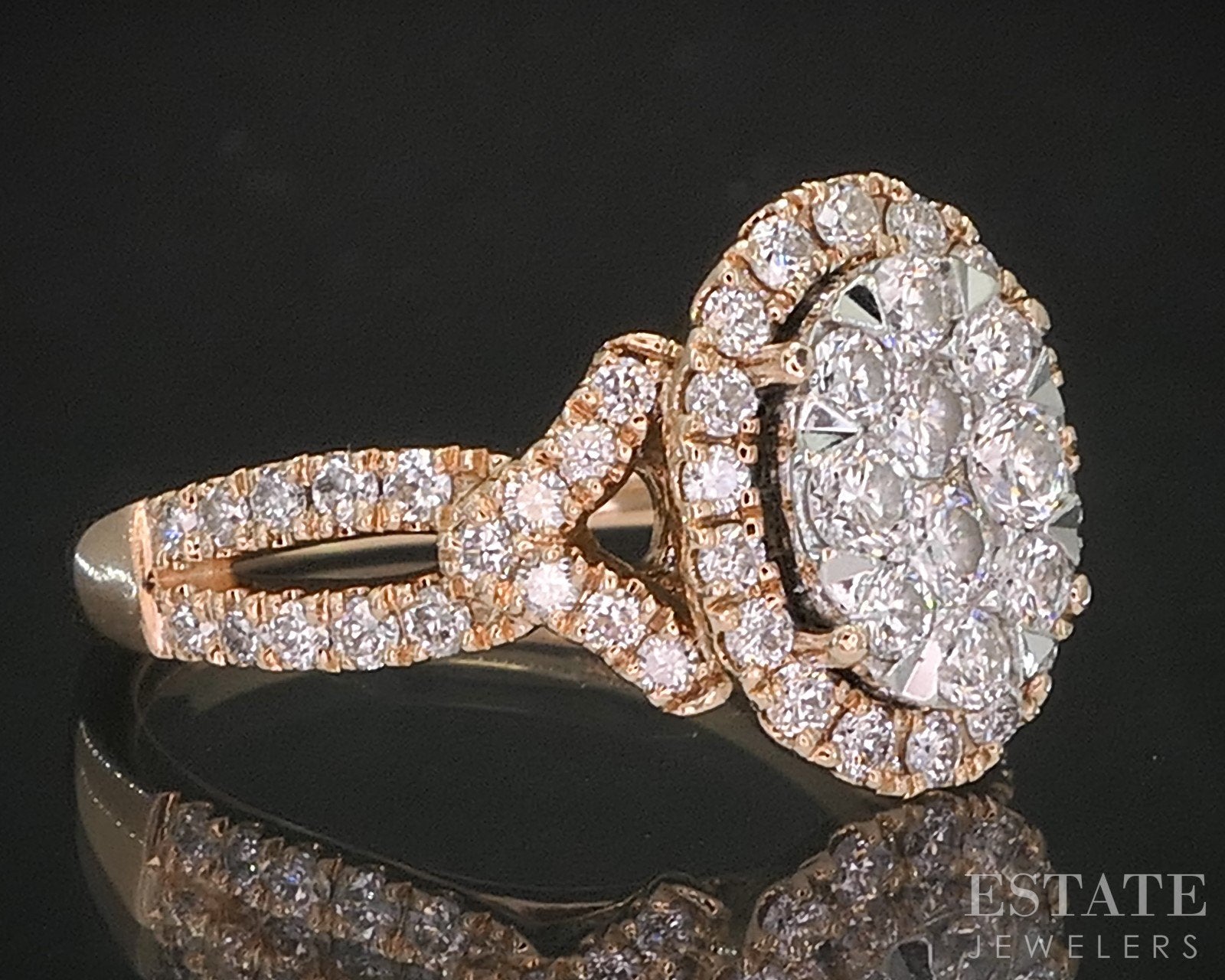 14k Rose Gold Natural .74ctw Diamond Cluster Halo Engagement Ring 5.1g i20357b