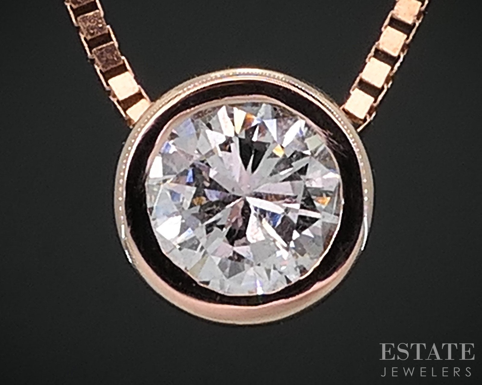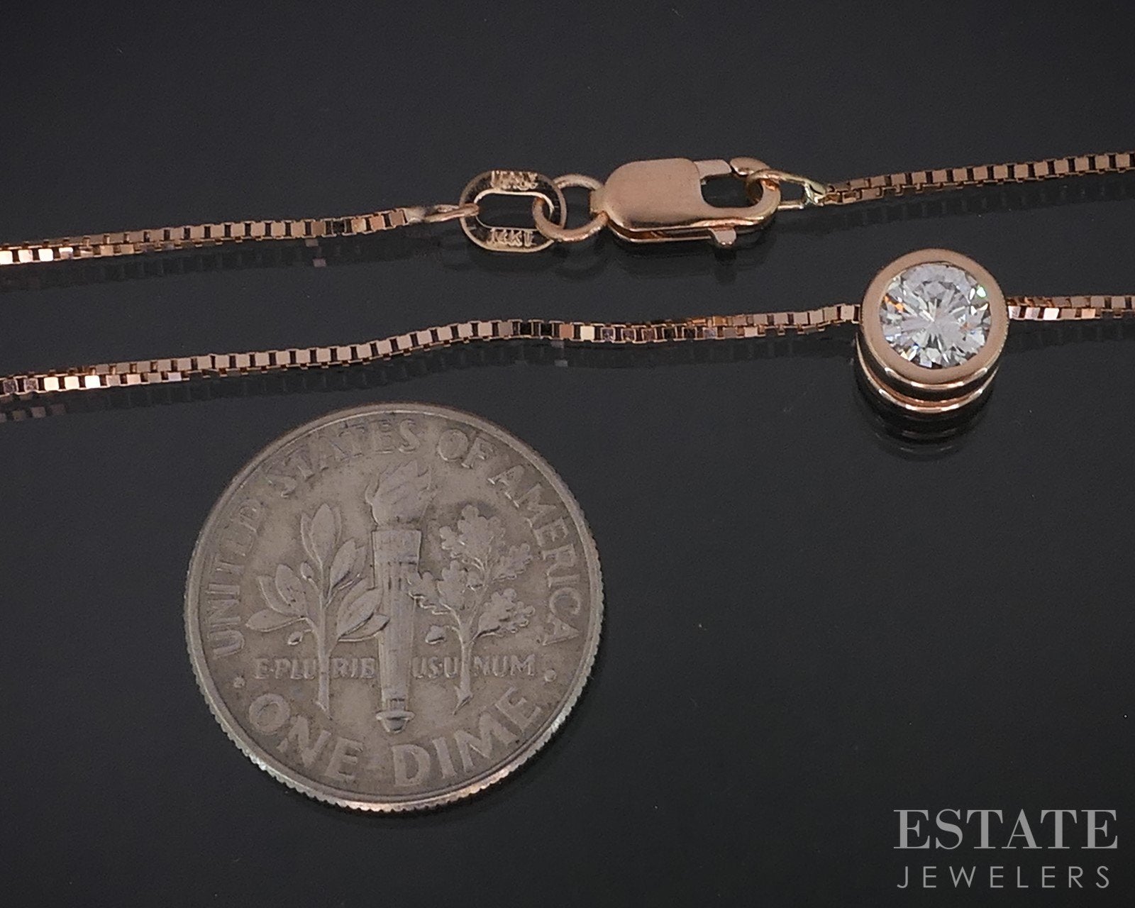 14k Rose Gold Round Natural .38ct Diamond Bezel Solitaire Necklace 3.2g i18580