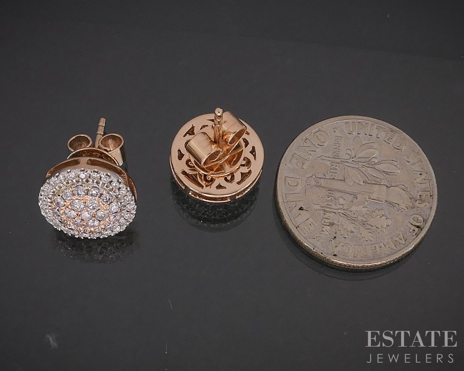 14k Rose & White Gold Natural .25ctw Diamond Cluster Stud Earrings 3.3g i20312