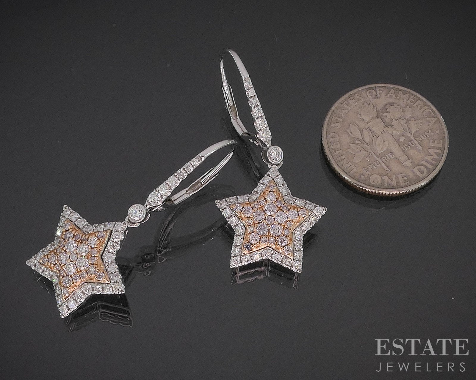 14k Rose & White Gold Natural .50ctw Diamond Cluster Star Earrings 4g i20119b