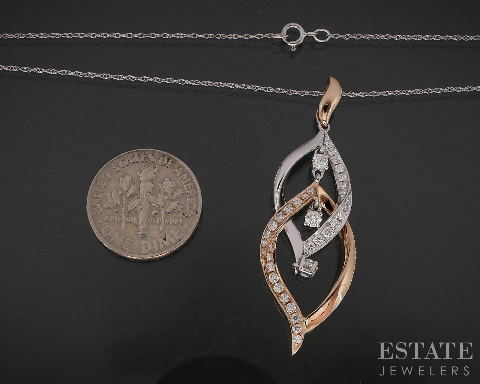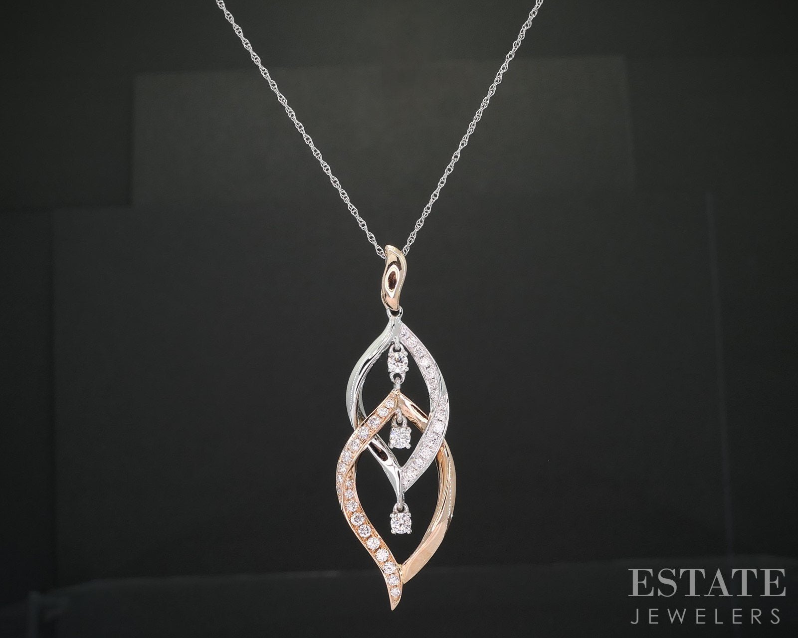 14k Rose & White Gold Natural .50ctw Diamond Dangle Necklace 4.2g 18"L i19265