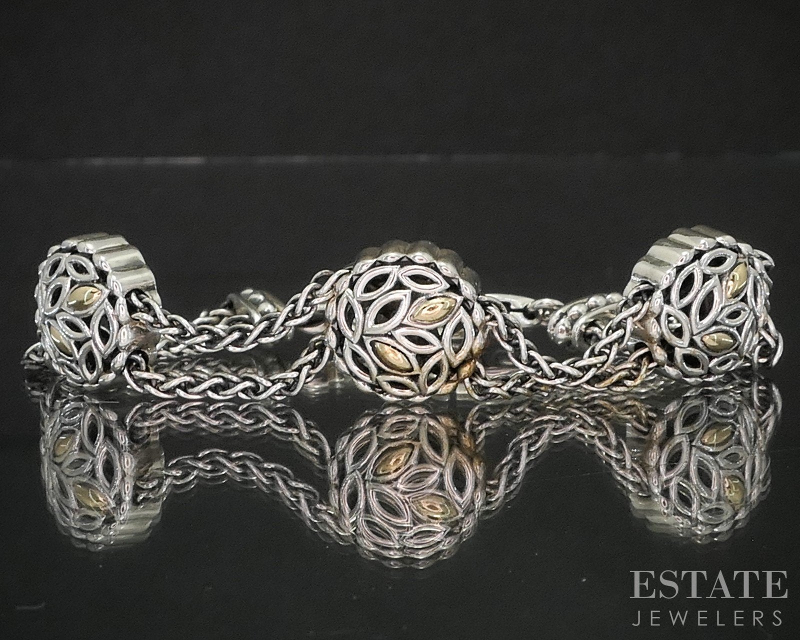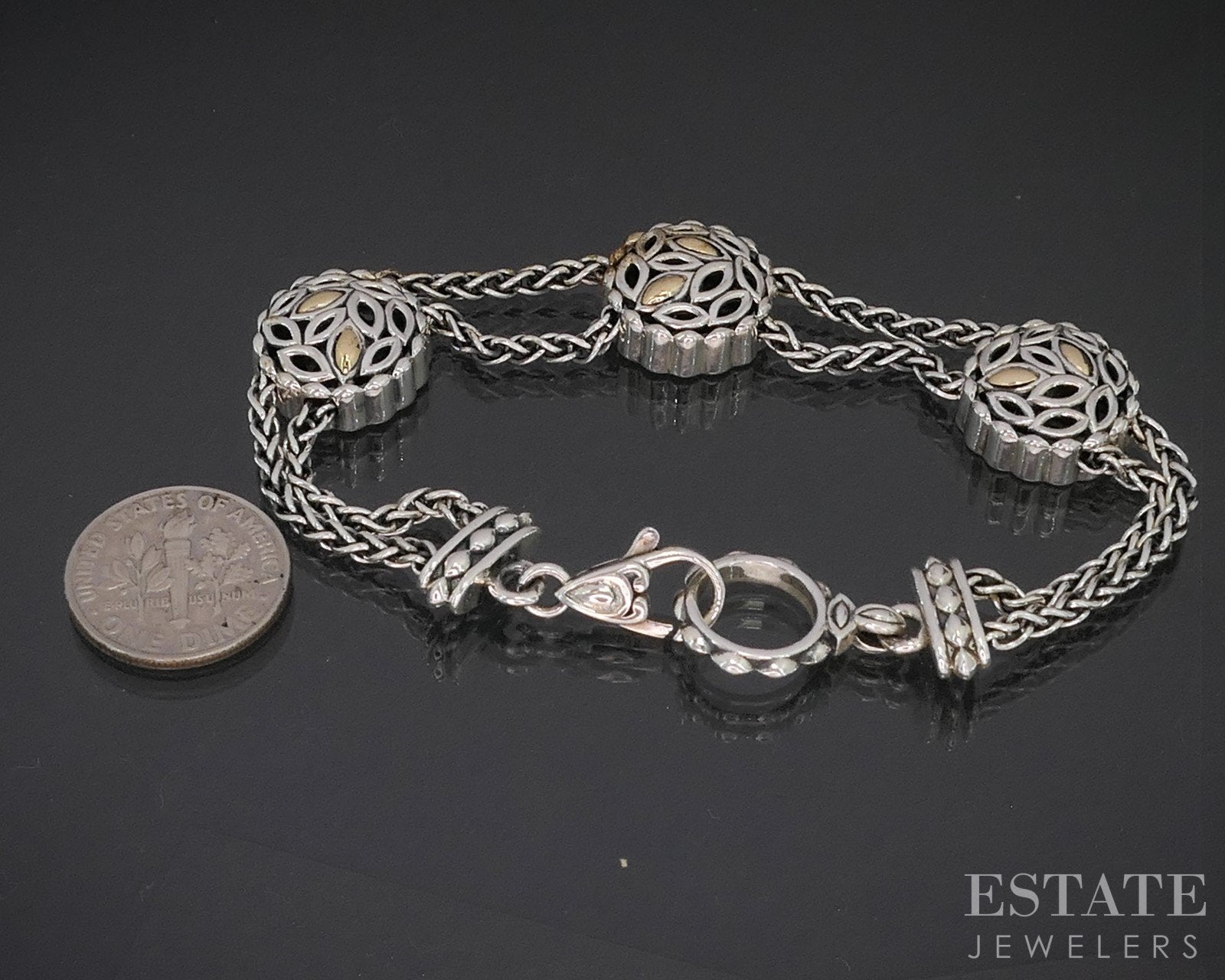 14k & Sterling Angela by John Hardy Wheat Chain Beaded Bracelet 21.8g p19108