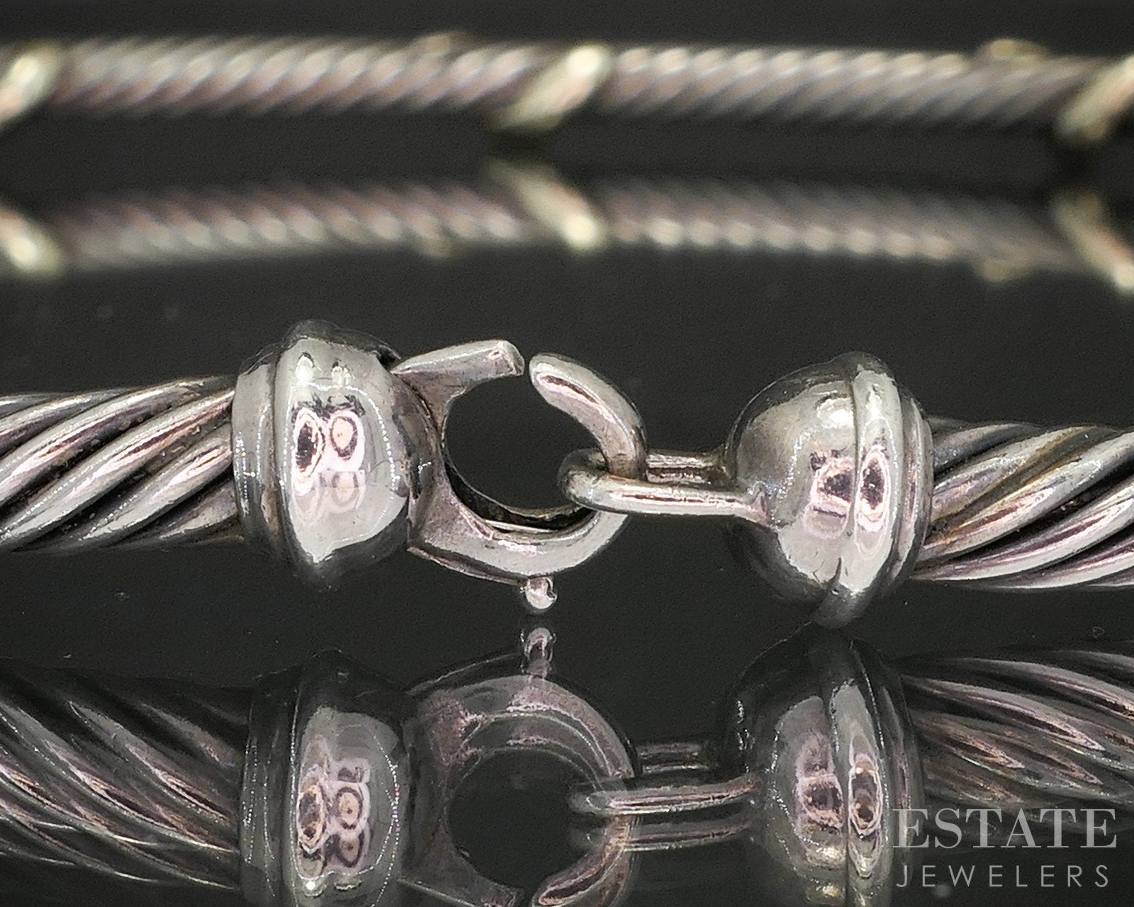 Additional Info: Stunning ladies David Yurman necklace with classic twisted cable designs throughout. 14k solid gold accents to the middle section.