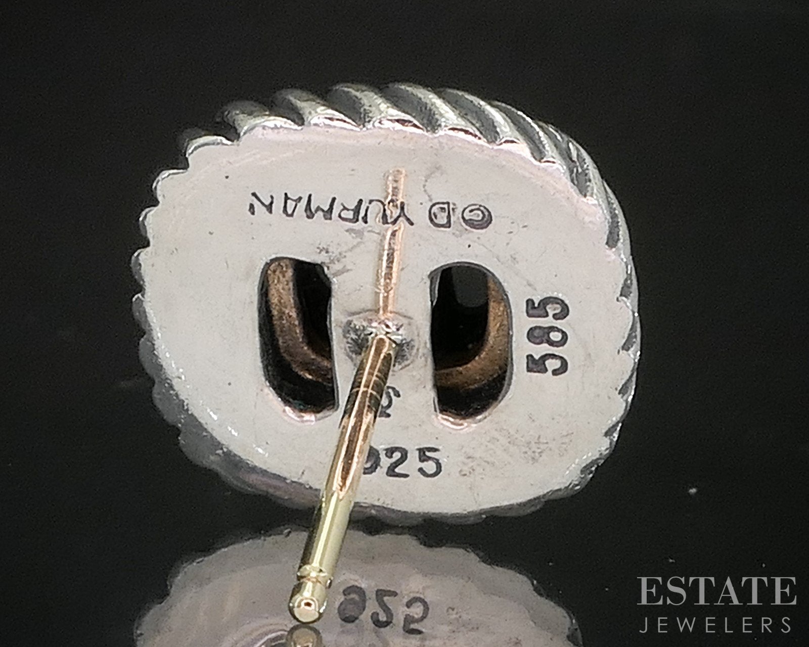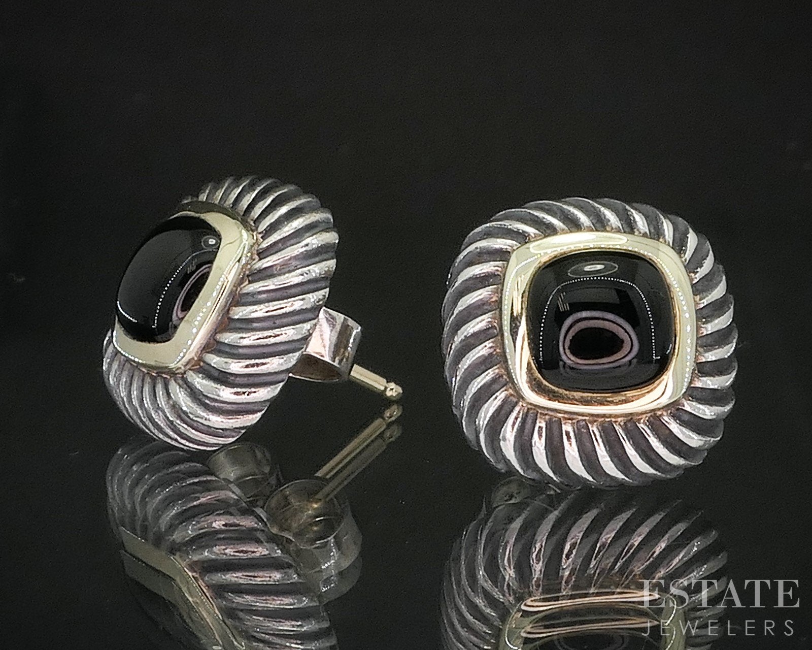 14k & Sterling David Yurman Black Onyx Cable Albion Stud Earrings 9.5g p15363