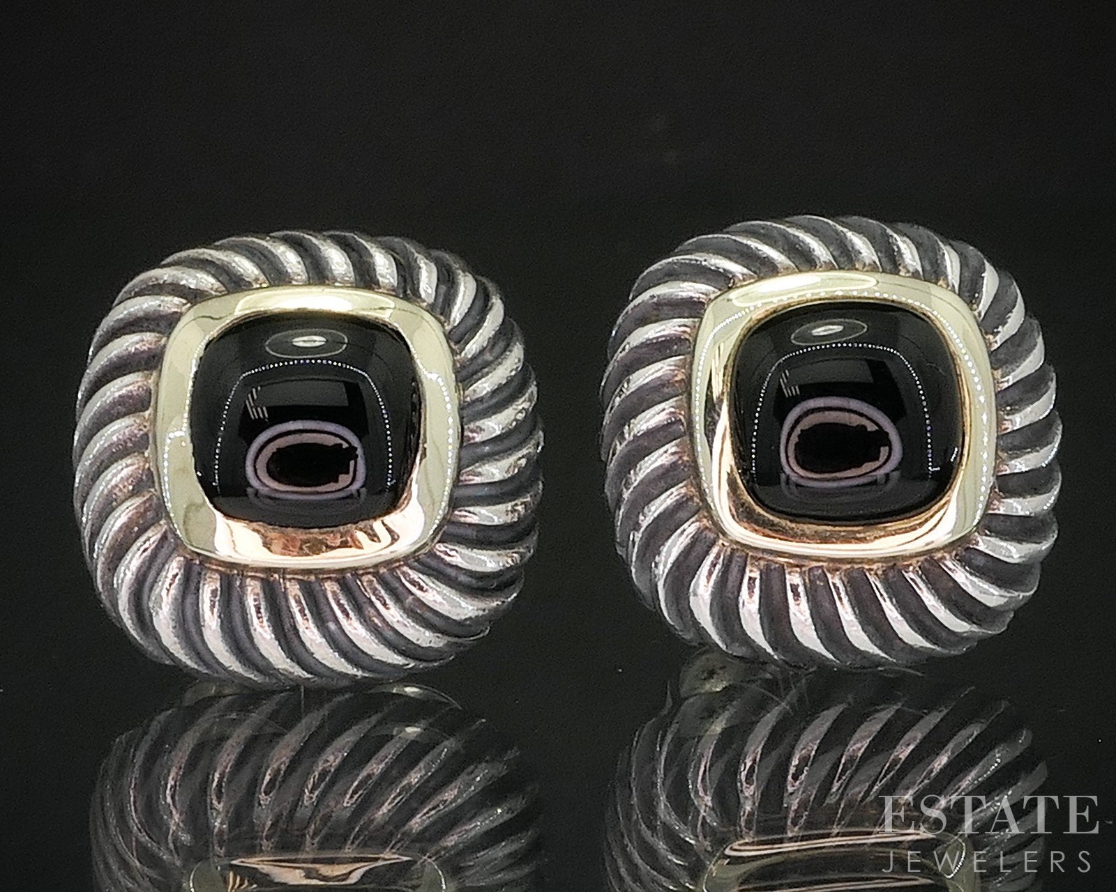 Additional Info: Genuine David Yurman cable earrings with Black Onyx gems set in 14k gold as well as the posts.