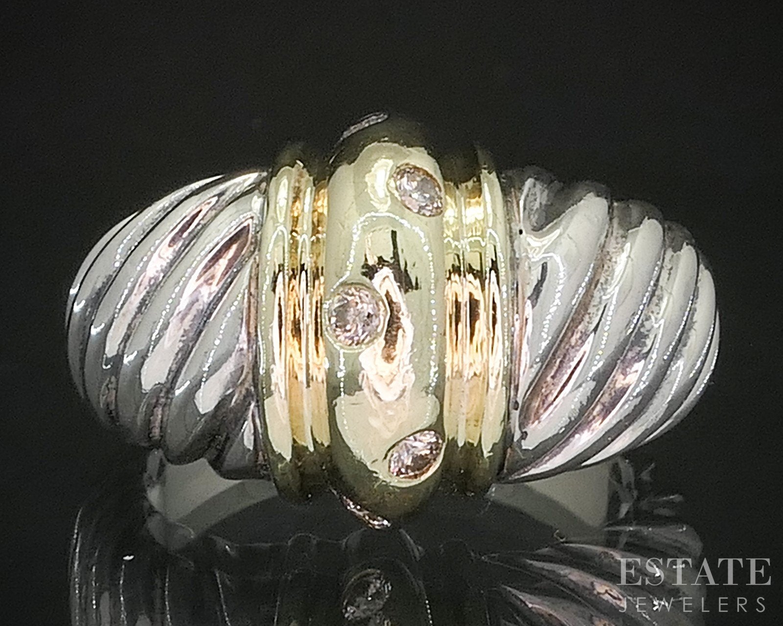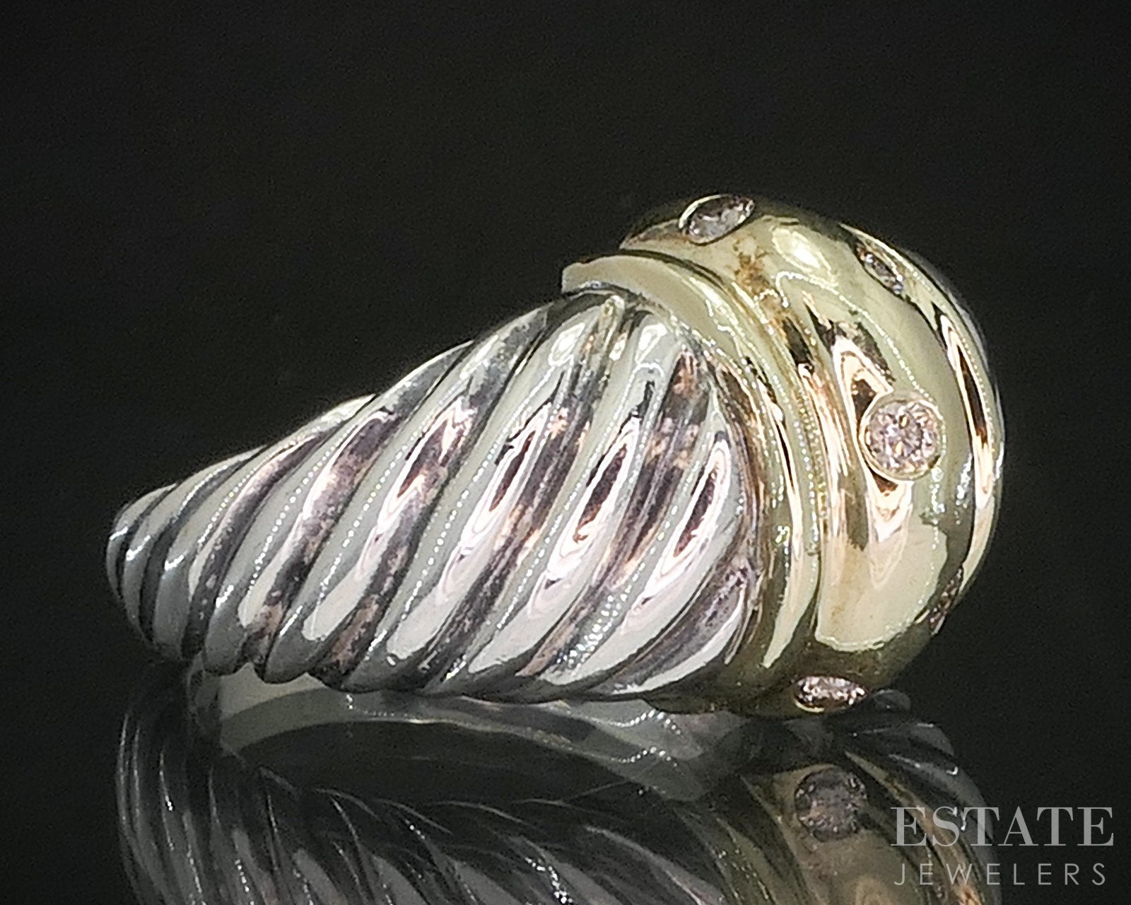 14k & Sterling David Yurman Diamond Cable Croissant Domed Ring 10.9g p15362
