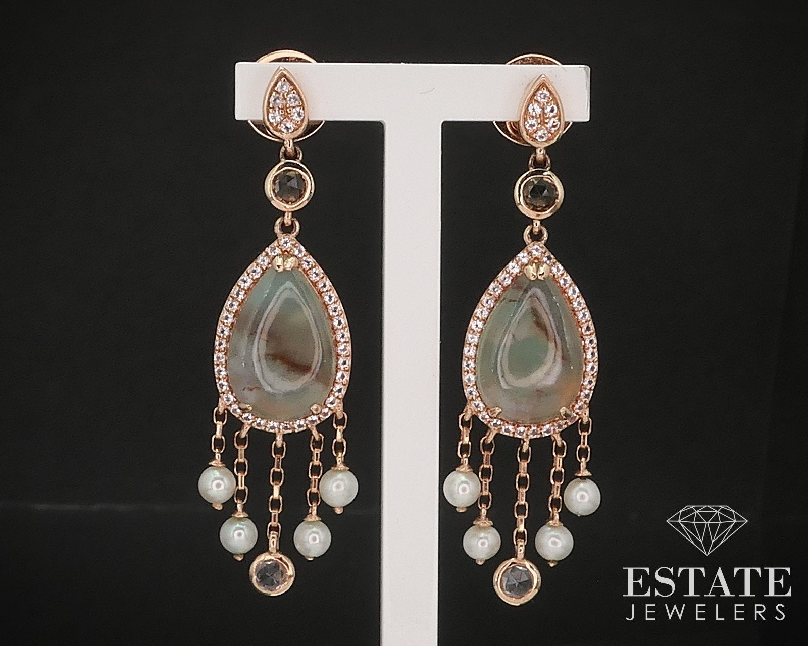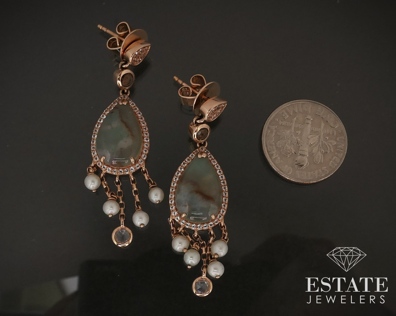 14k Strawberry Gold LeVian Aquaprase Topaz Pearl Quartz Earrings 8.6g i17475