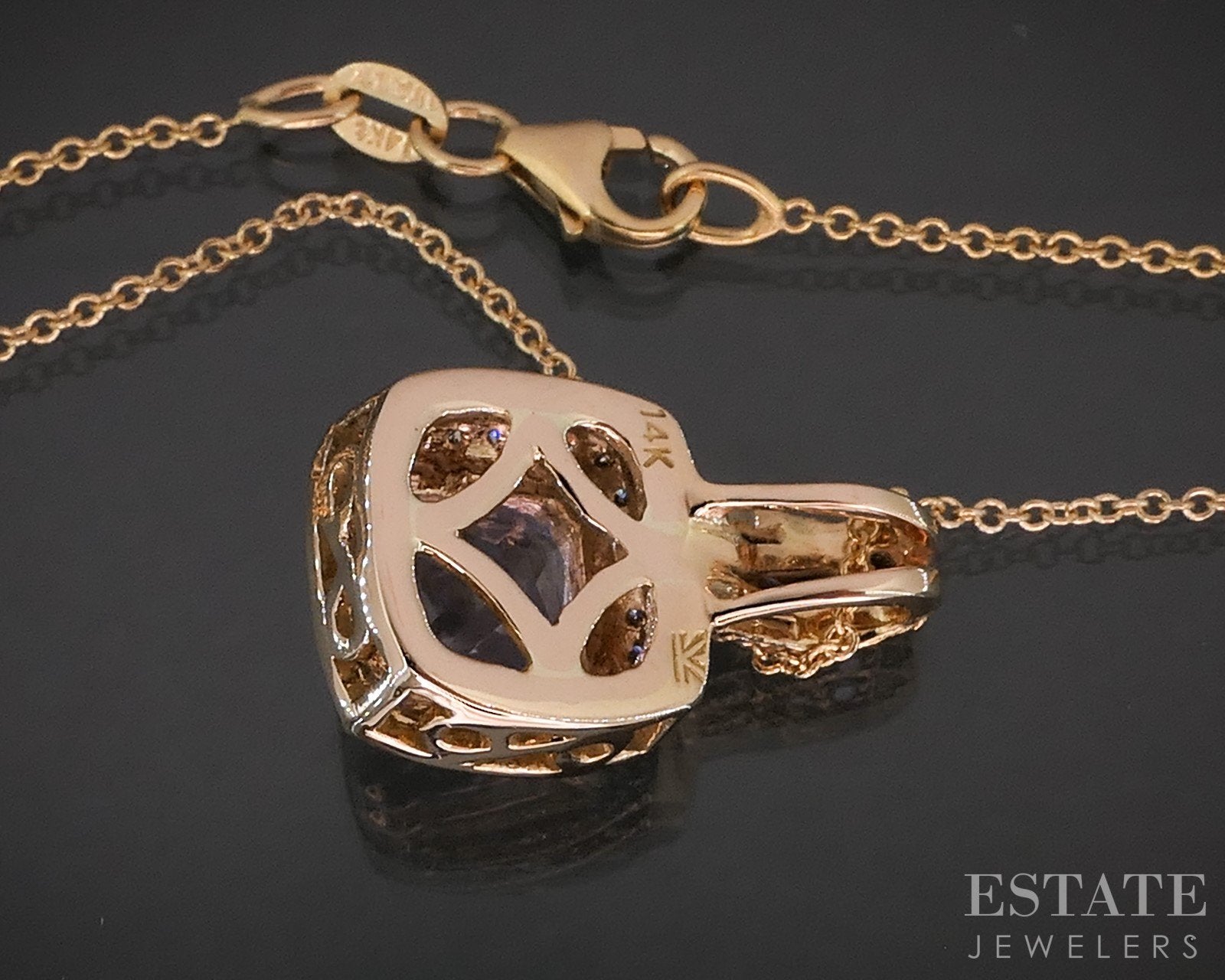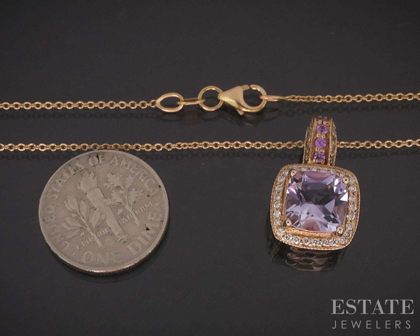 14k Strawberry Gold LeVian Natural Amethyst & Diamond Necklace 4.7g i19318