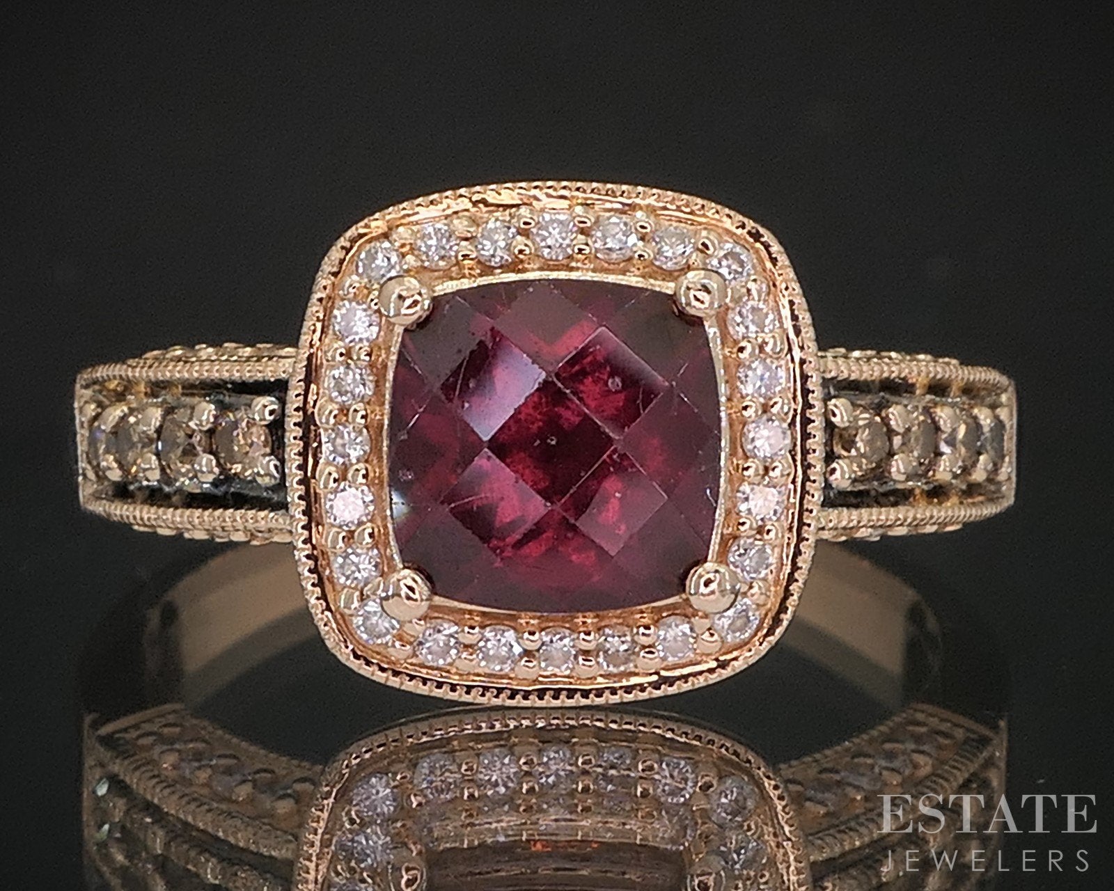 14k Strawberry Gold LeVian Natural Rhdolite Garnet & Diamond Ring 5.7g i20318
