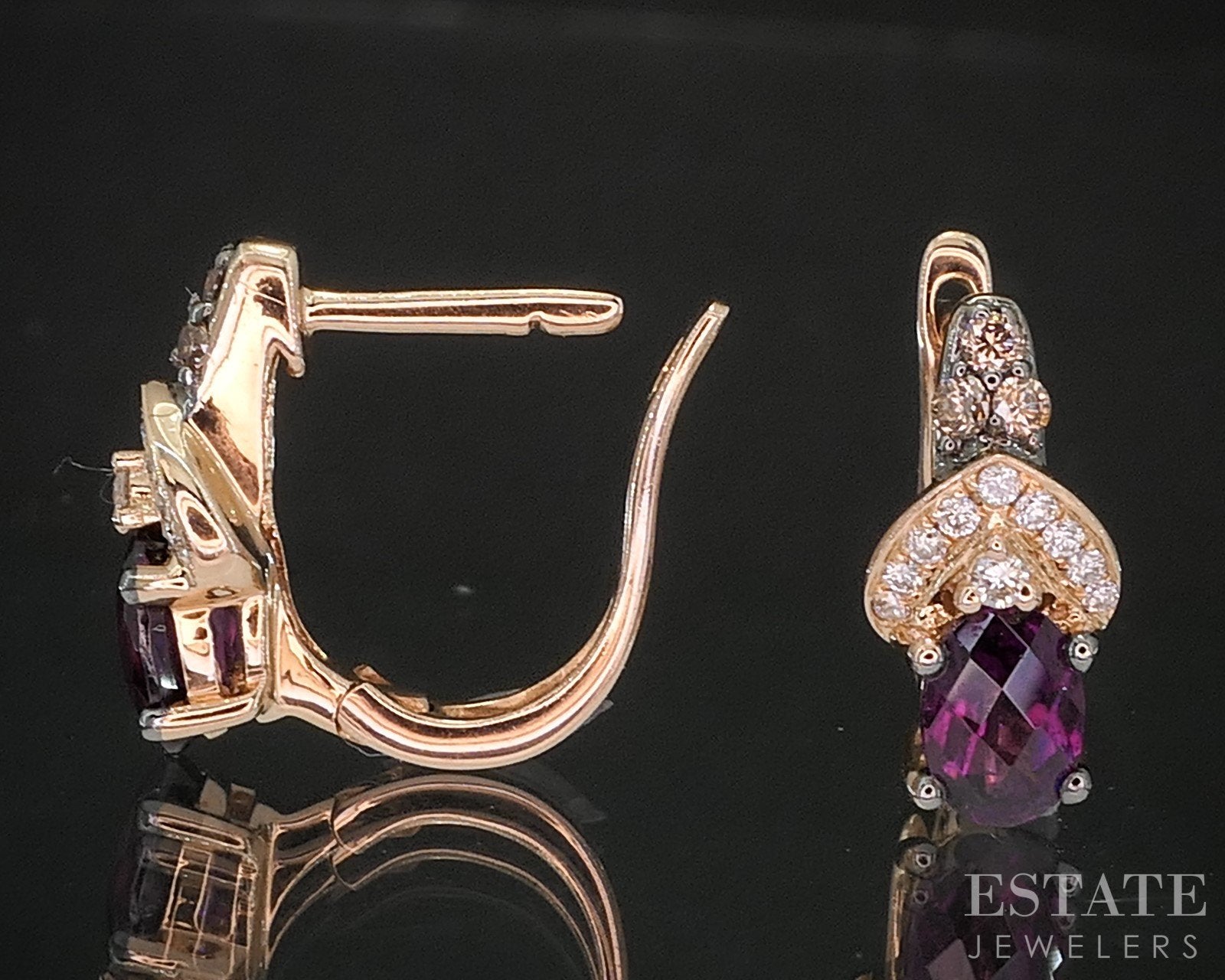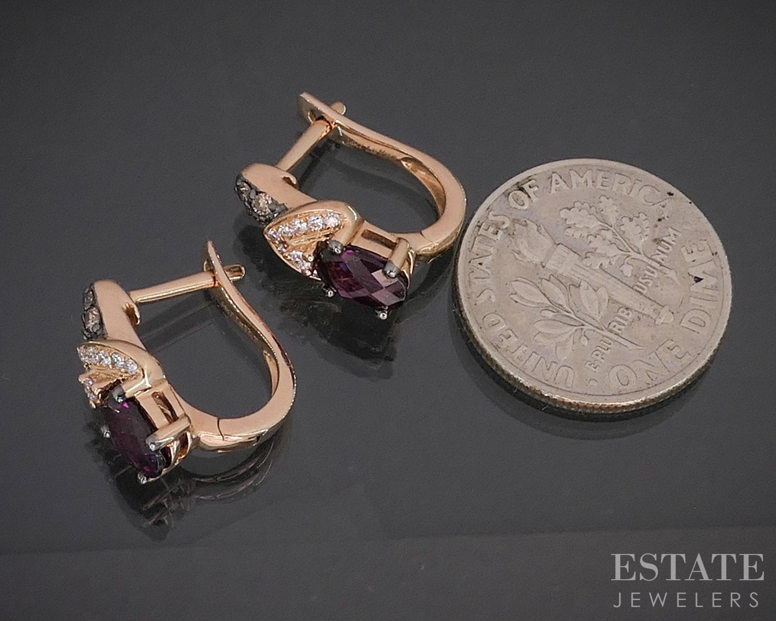 14k Strawberry Gold LeVian Natural Rhodolite Garnet & Diamond Earrings 3g i20299