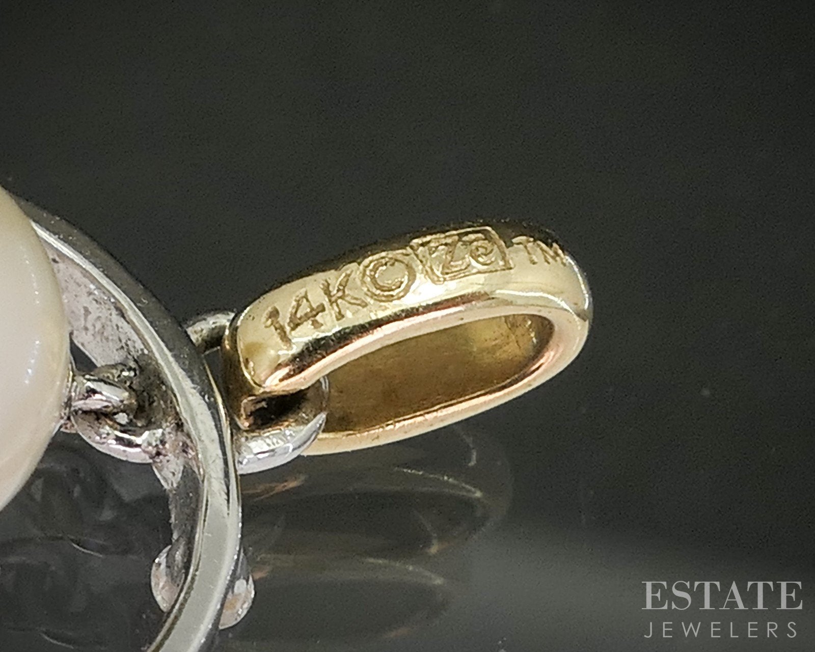 14k Two Tone Gold 6.4mm Cultured Pearl Diamond Circle Charm Pendant 1.2g p18072b