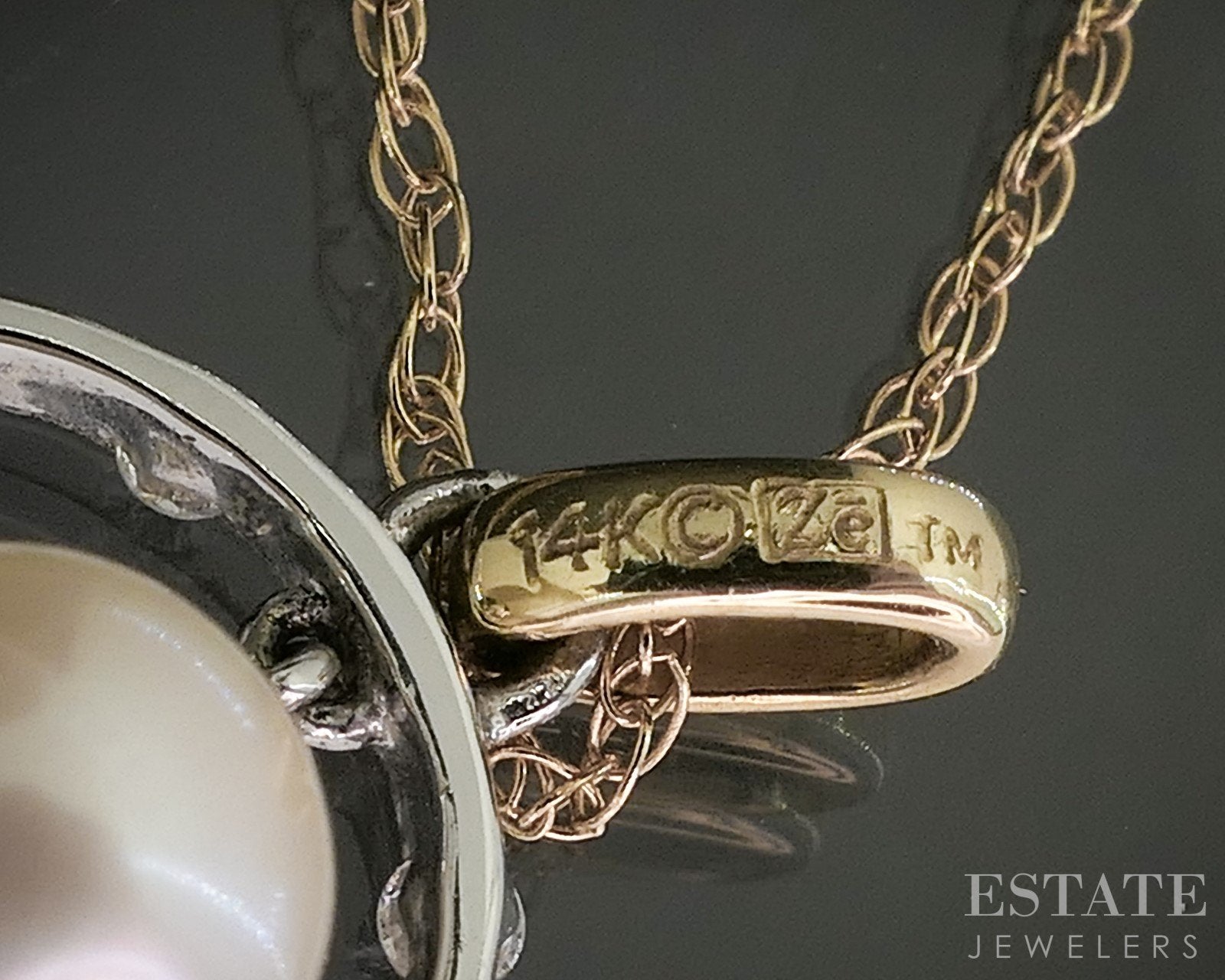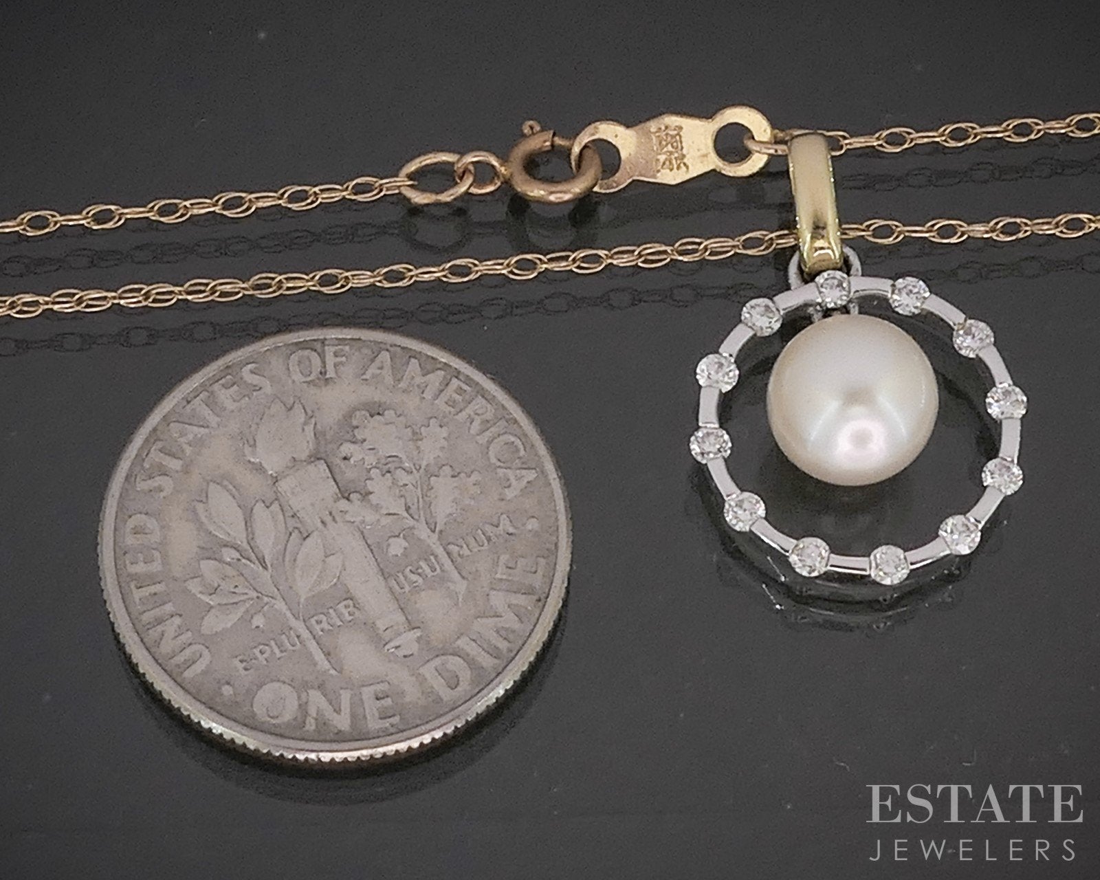14k Two Tone Gold 6.4mm Cultured Pearl Diamond Circle Necklace 1.7g 18"L p18072b