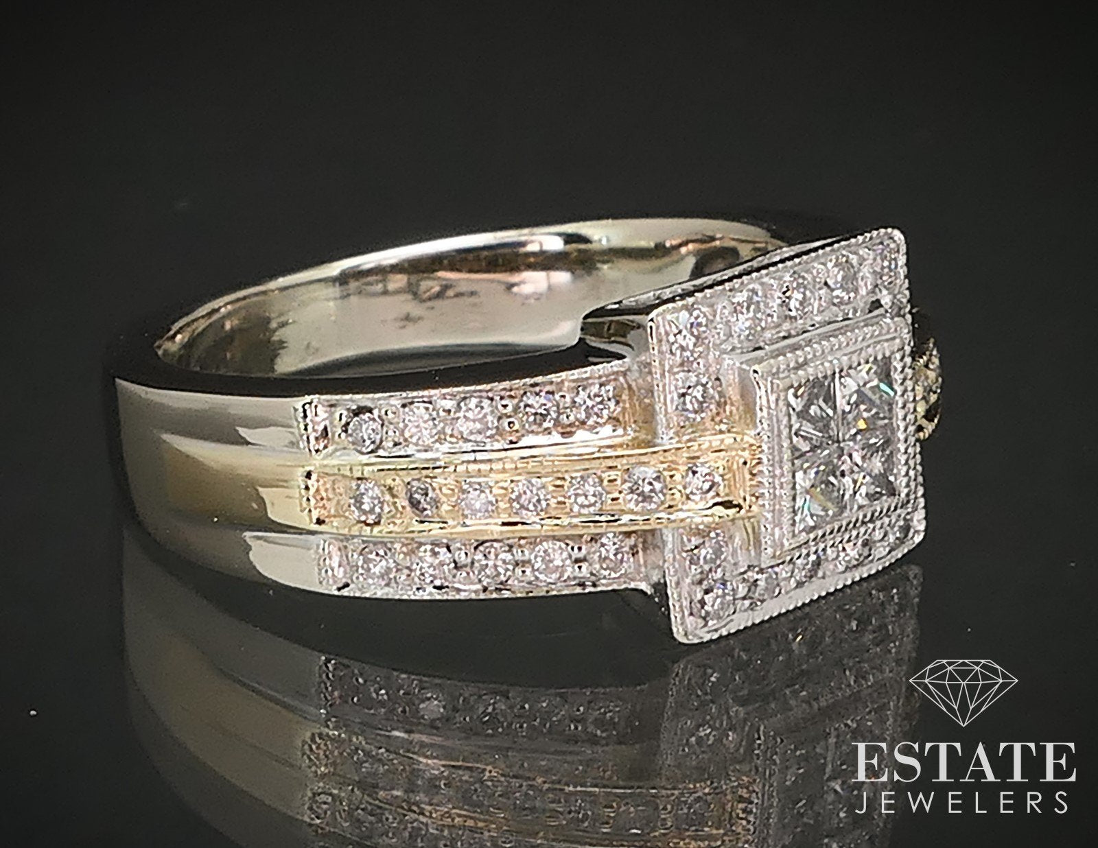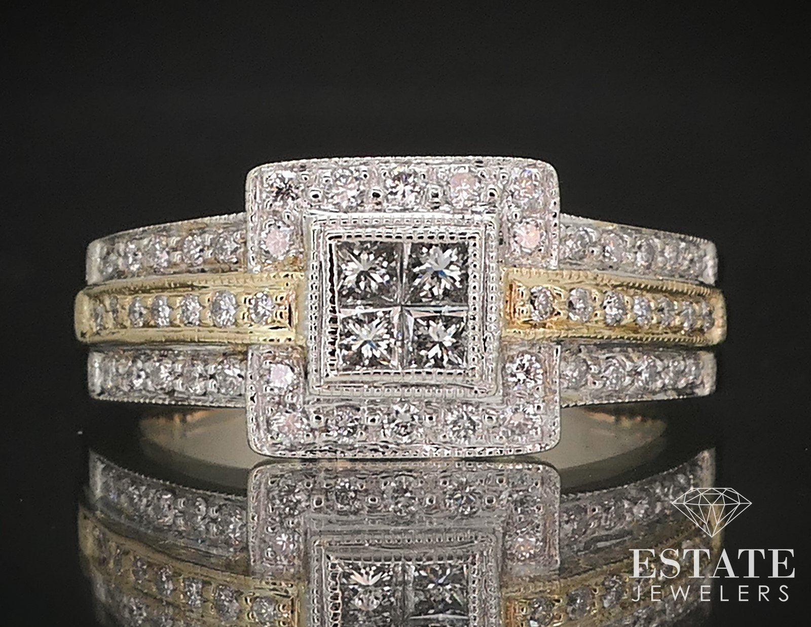 14k Two Tone Gold Natural .50ctw Diamond Invisible Engagement Ring 5.7g i17255