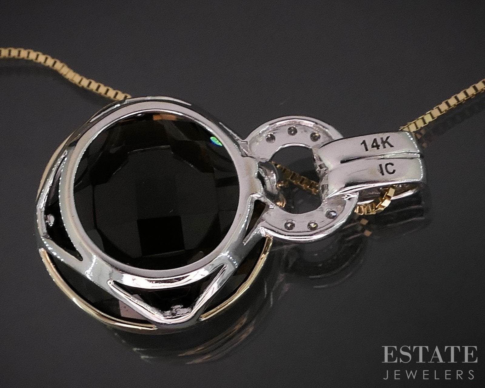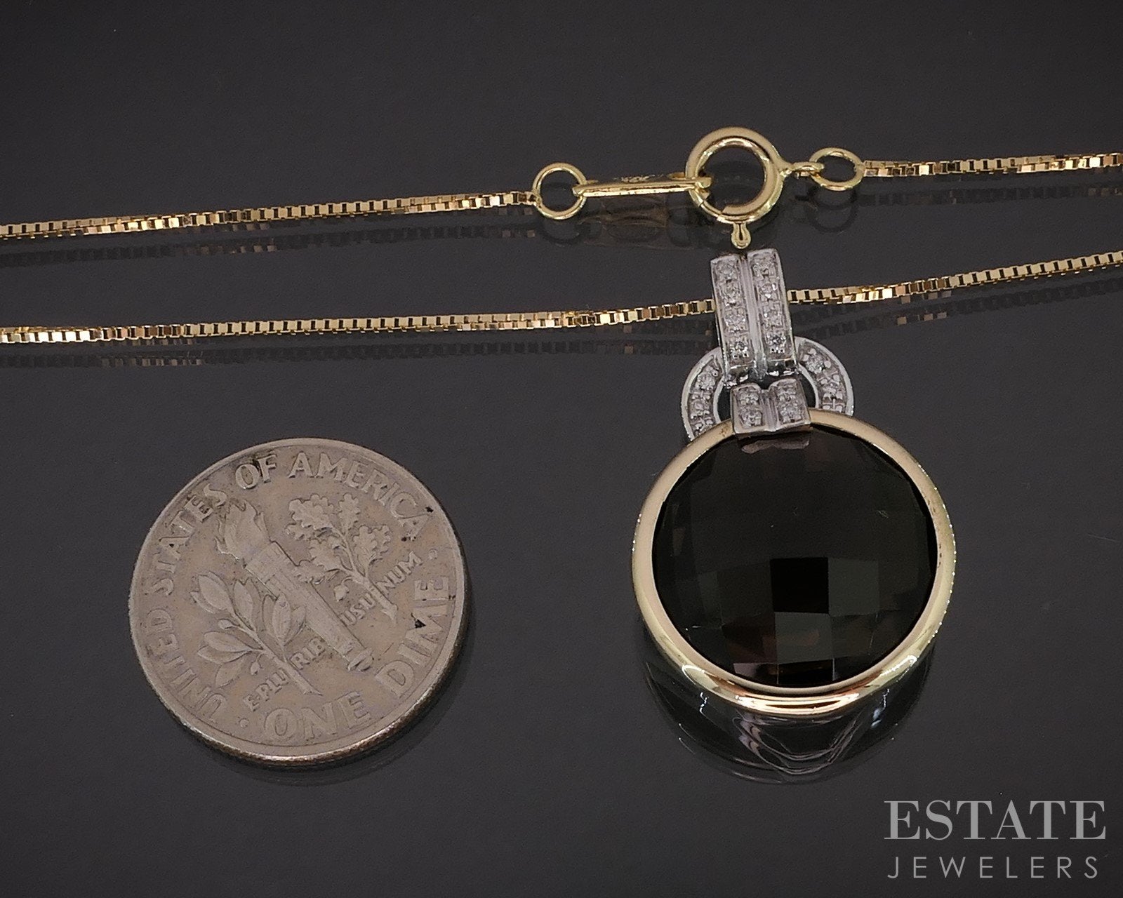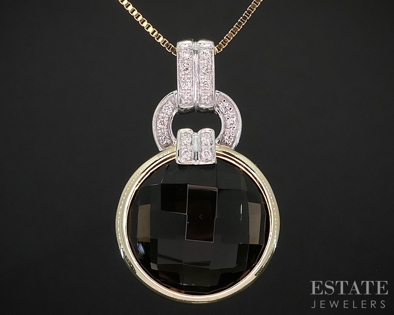 14k Two Tone Gold Round Natural Smoky Quartz & Diamond Necklace 6.3g i19281