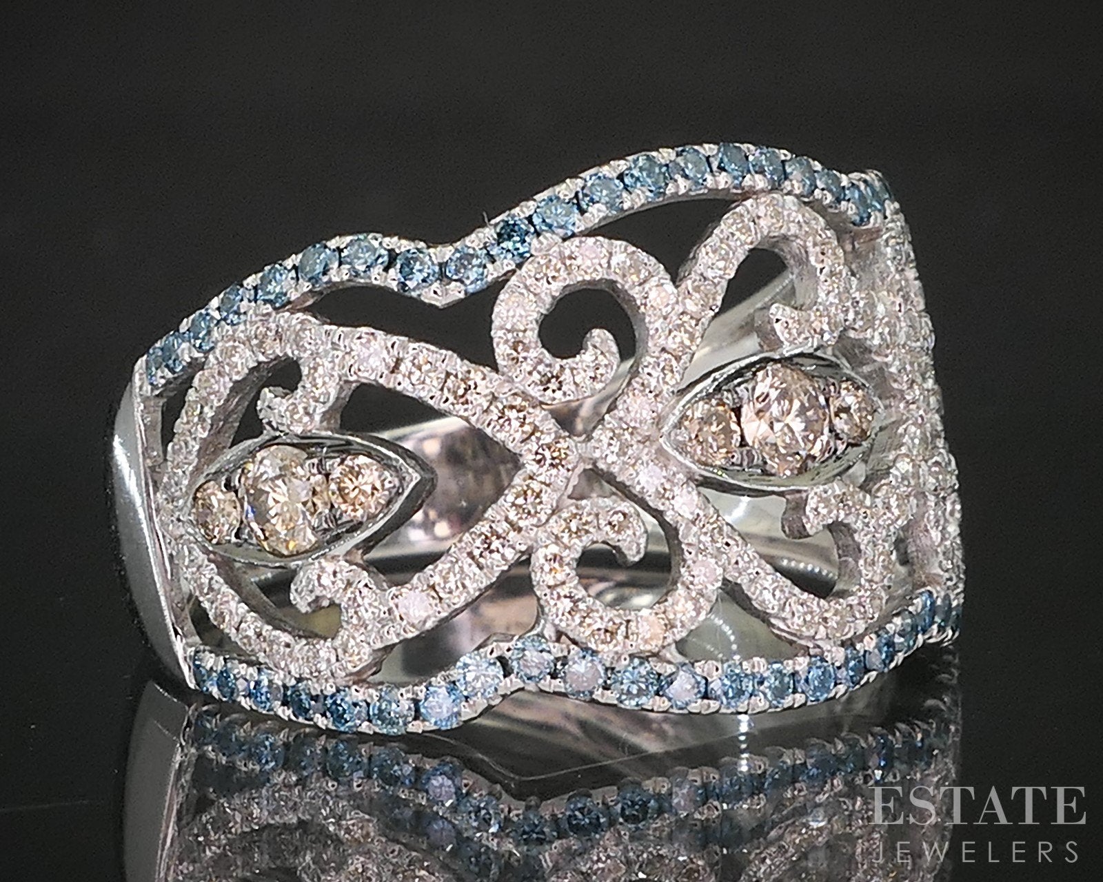 Diamond Information: Approximately .71ctw of Chocolate, Ice Blue and Vanilla Diamonds.