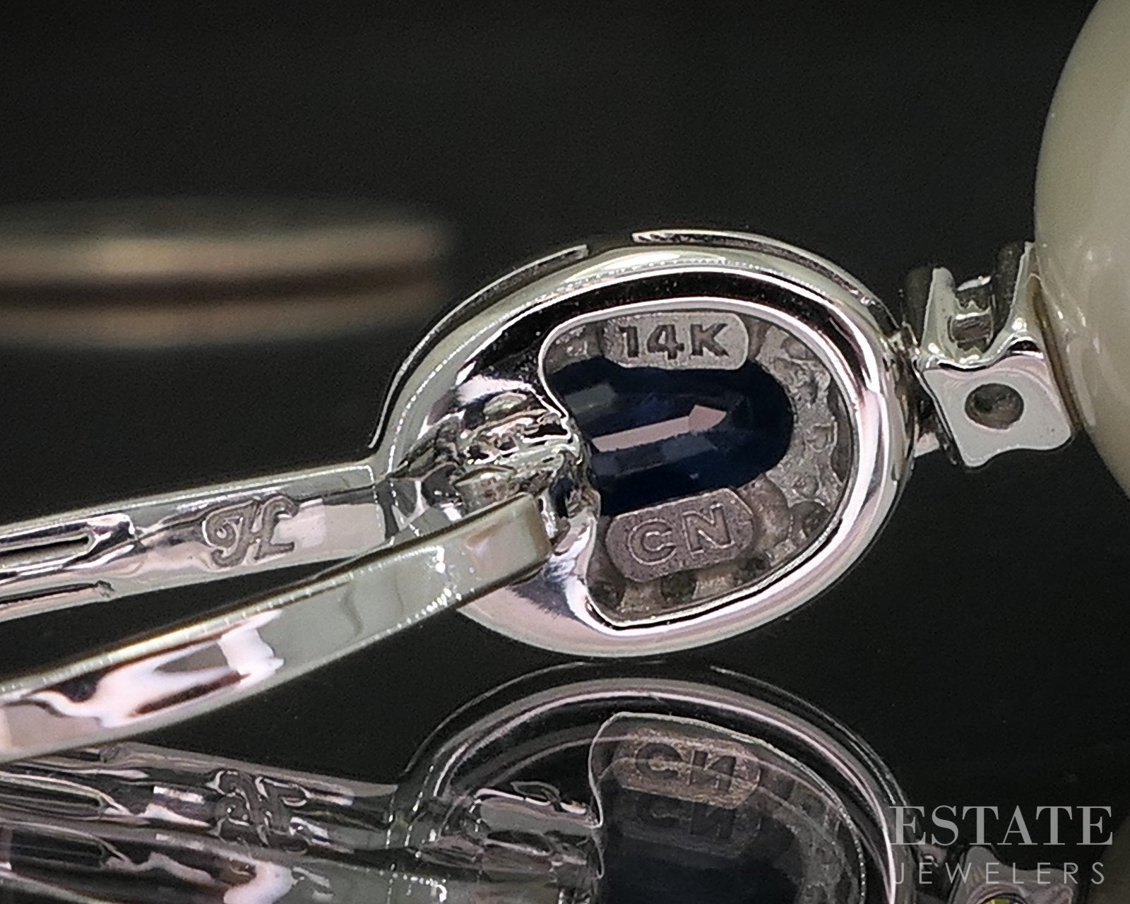 14k White Gold 12.5mm Pearl Blue Sapphire & Diamond Earrings 8.2g i20418