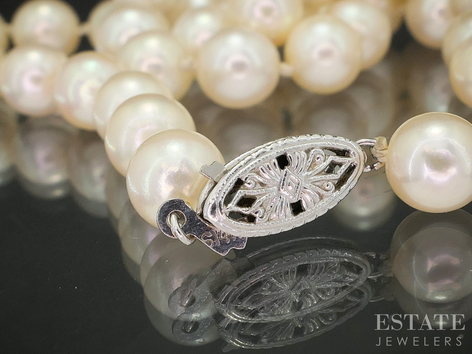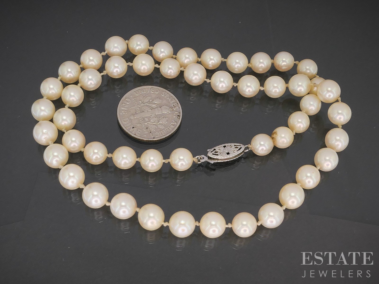 14k White Gold 6.3mm Cultured Pearl Ladies Necklace 15.5"L p18115b