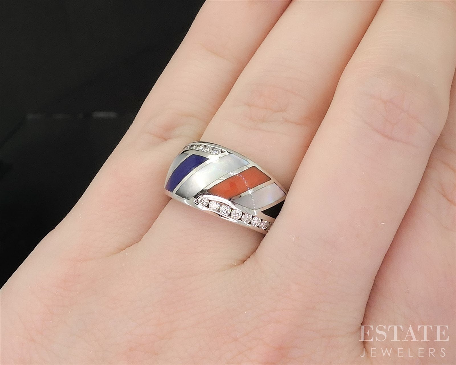 14k White Gold Asch Grossbardt Natural Multi Gem & Diamond Band Ring 8g i20021