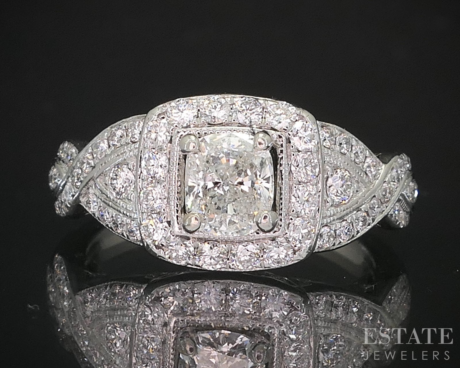 14k White Gold Cushion Natural 1.45ctw Diamond Halo Engagement Ring 4.9g i19413
