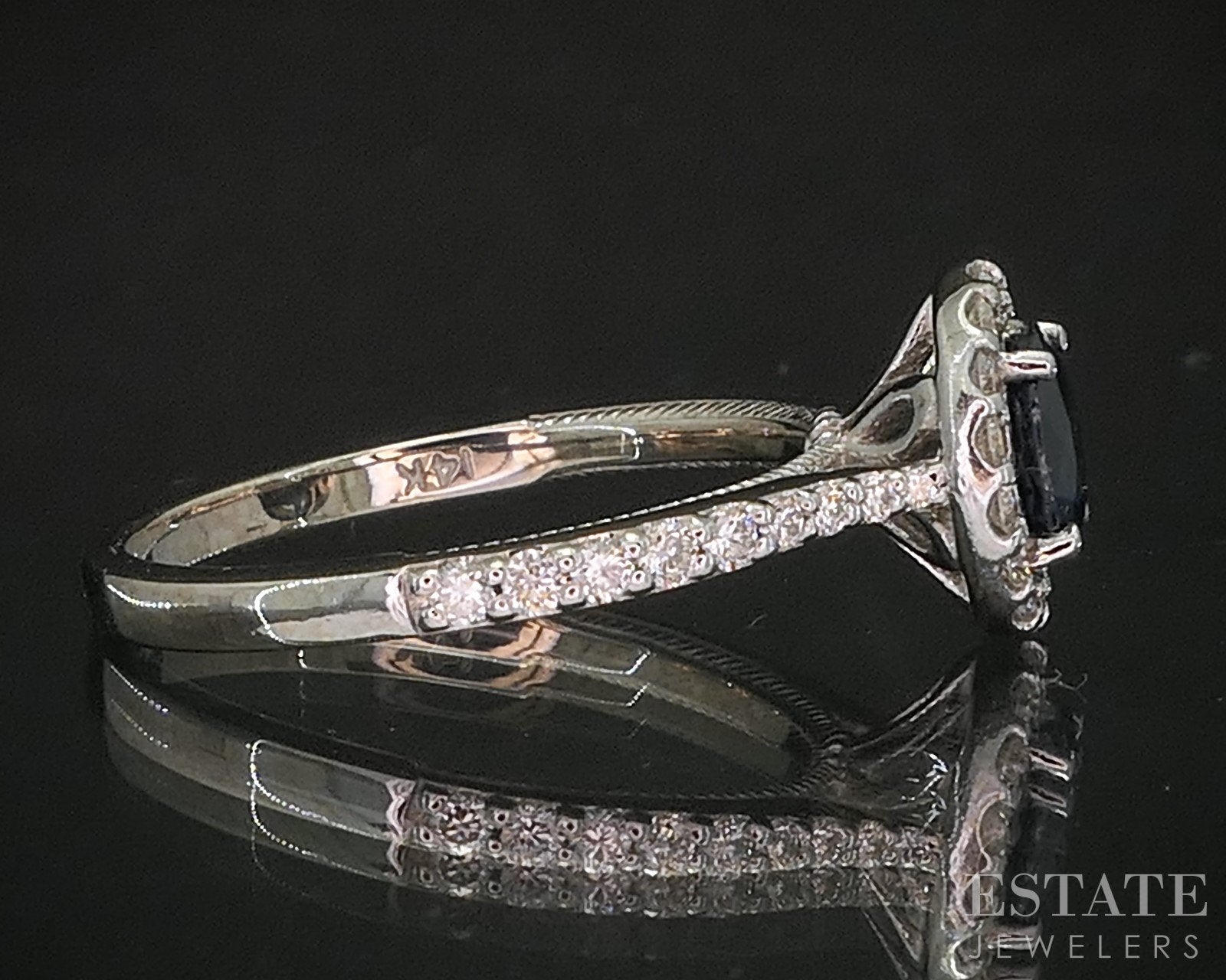 14k White Gold EFFY Natural Blue Sapphire & Diamond Halo Ladies Ring 3.1g i20295