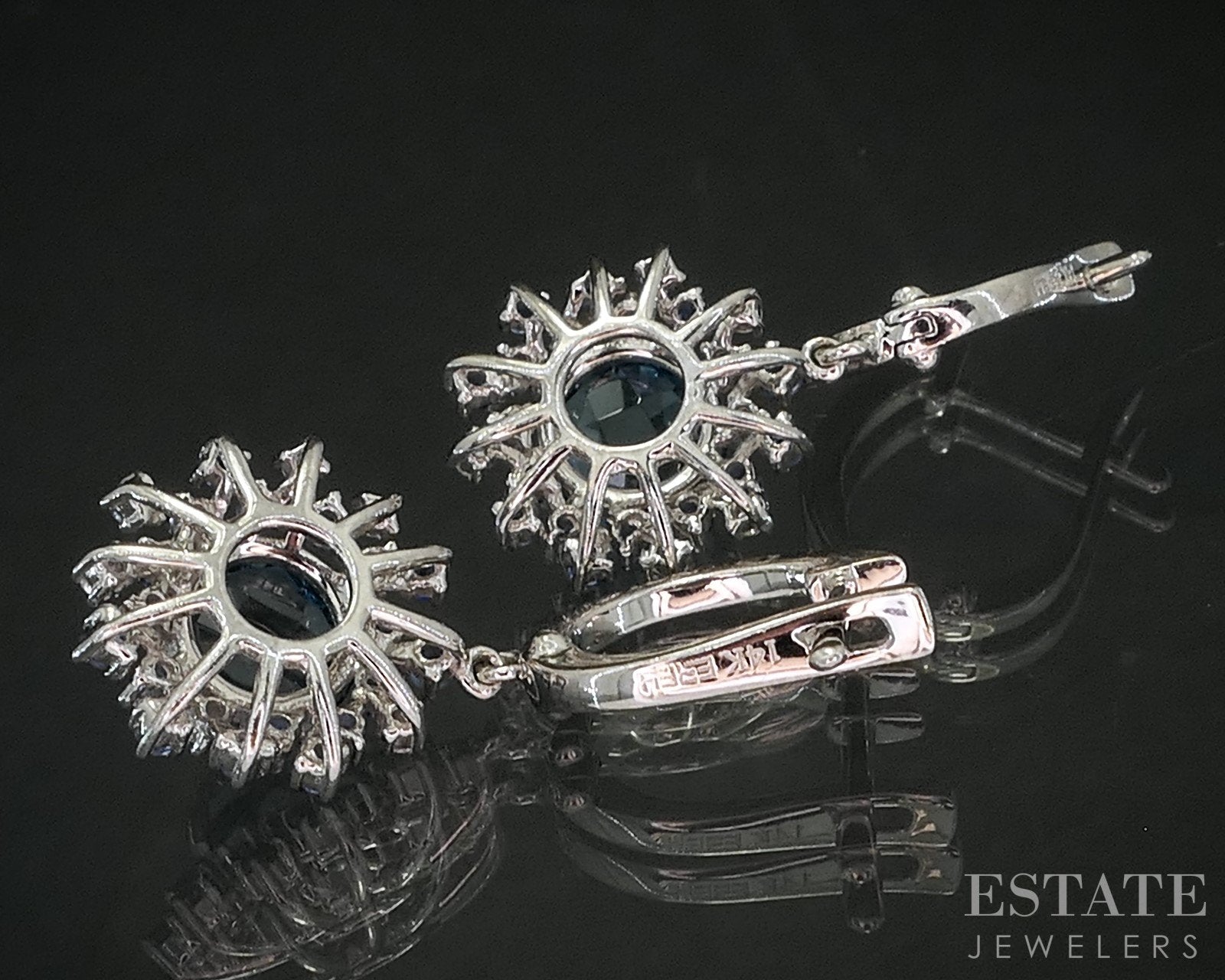 14k White Gold EFFY Natural Blue Topaz Sapphire Diamond Earrings 5g i20298