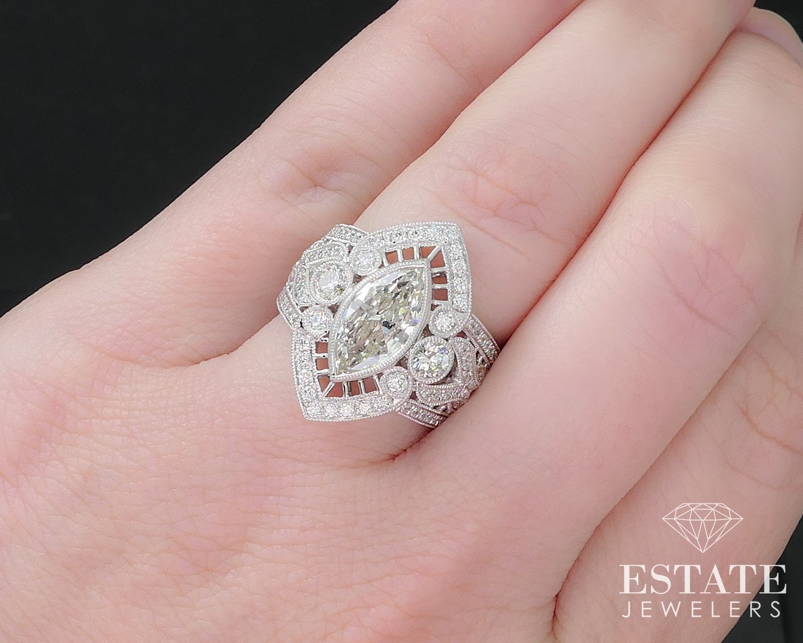 14k White Gold GIA Marquise Natural 2.16ctw Diamond Cocktail Ring 8.1g p71025