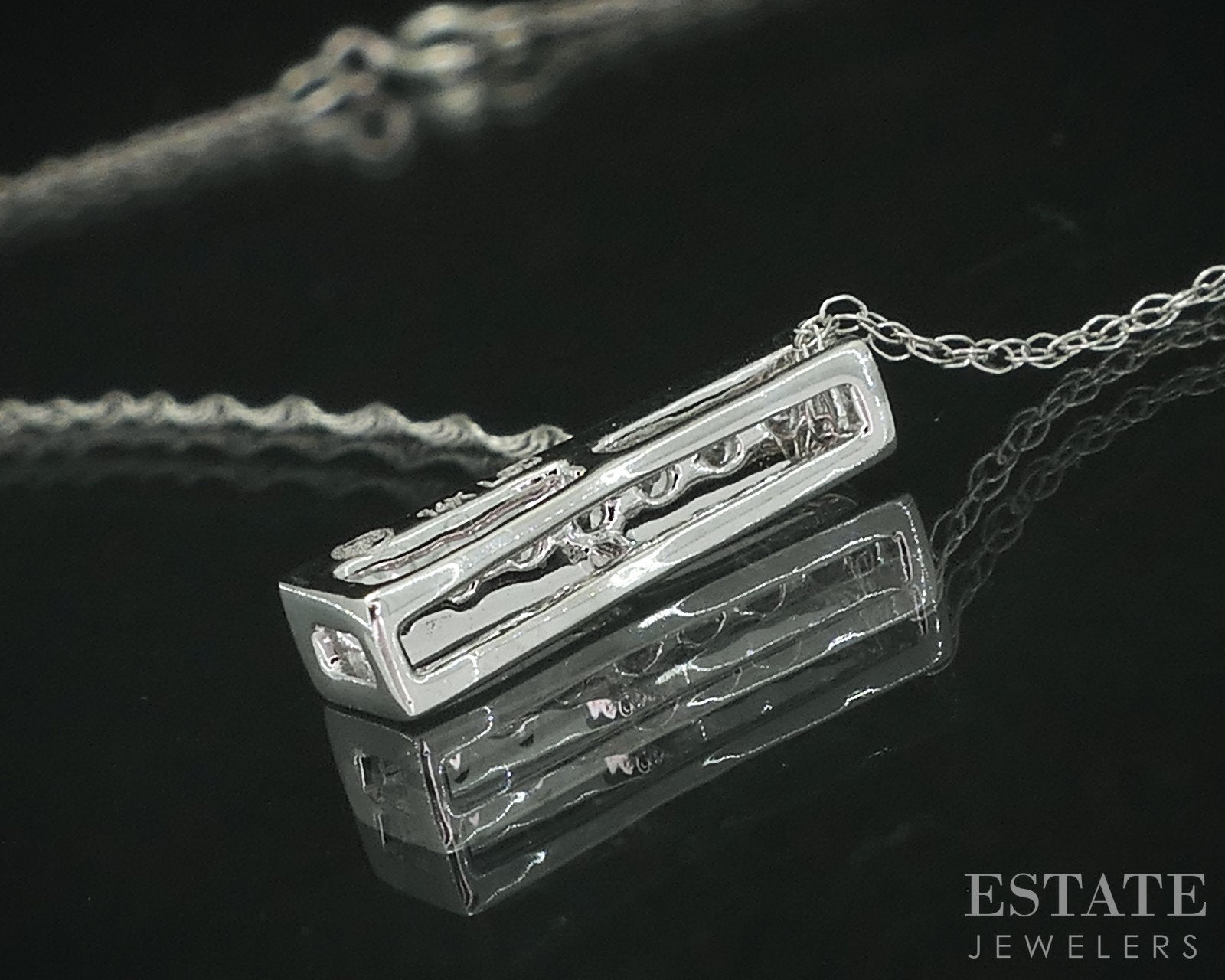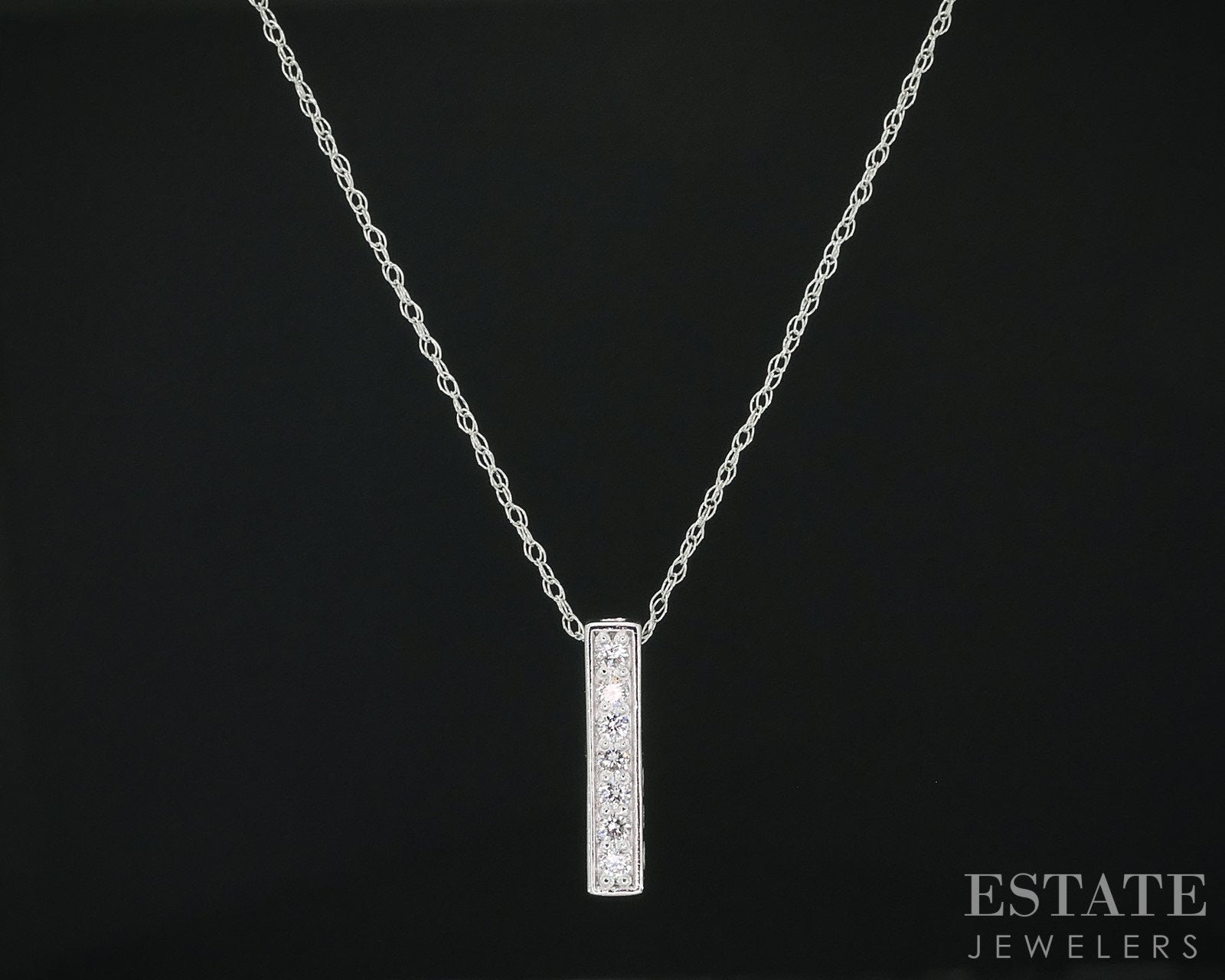 Additional Info: Brilliant ladies bar shaped pendant with sparkling Diamonds from top to bottom. The beauty is attached to a dainty rope chain.