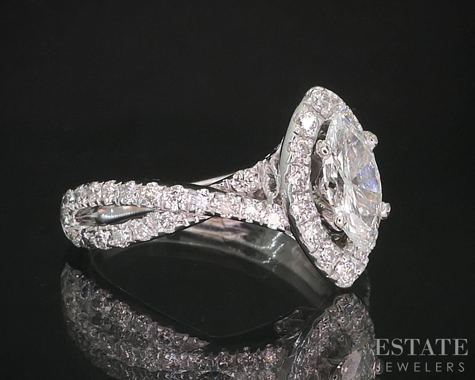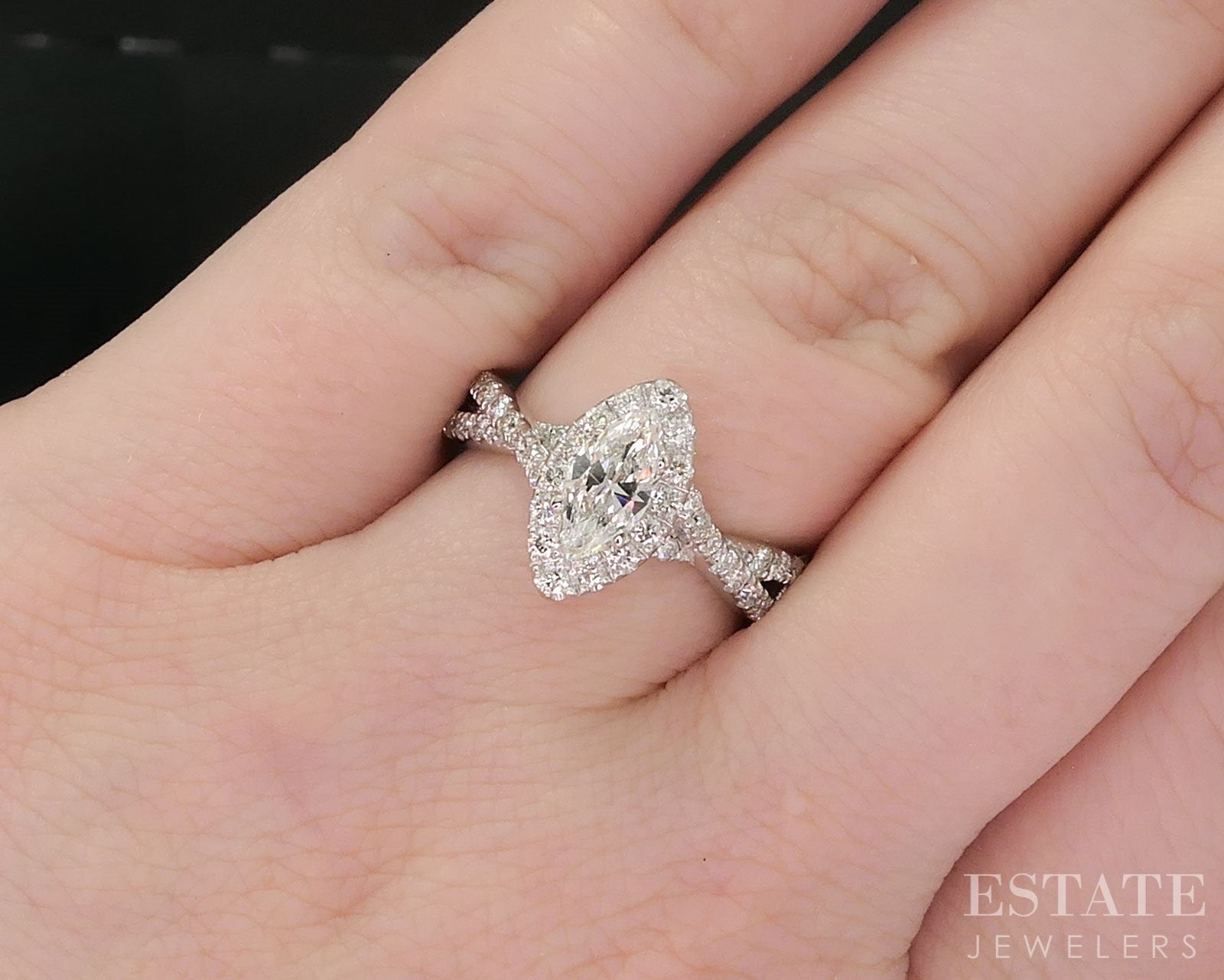 Additional Info: Celebrate a love that stands the test of time with this breathtaking Neil Lane marquise-cut Diamond engagement ring. Designed with vintage-inspired elegance and signature Neil Lane artistry, the elongated marquise center Diamond is beautifully set to maximize brilliance and elongate the finger. Shimmering pavé-set Diamonds gracefully accent the crossover band, adding layers of sophistication and sparkle. Crafted in rich white gold, this ring is a timeless symbol of romance, designed for those who appreciate classic glamour with a touch of vintage charm. Look for the matching contour wedding band in our store, i19581