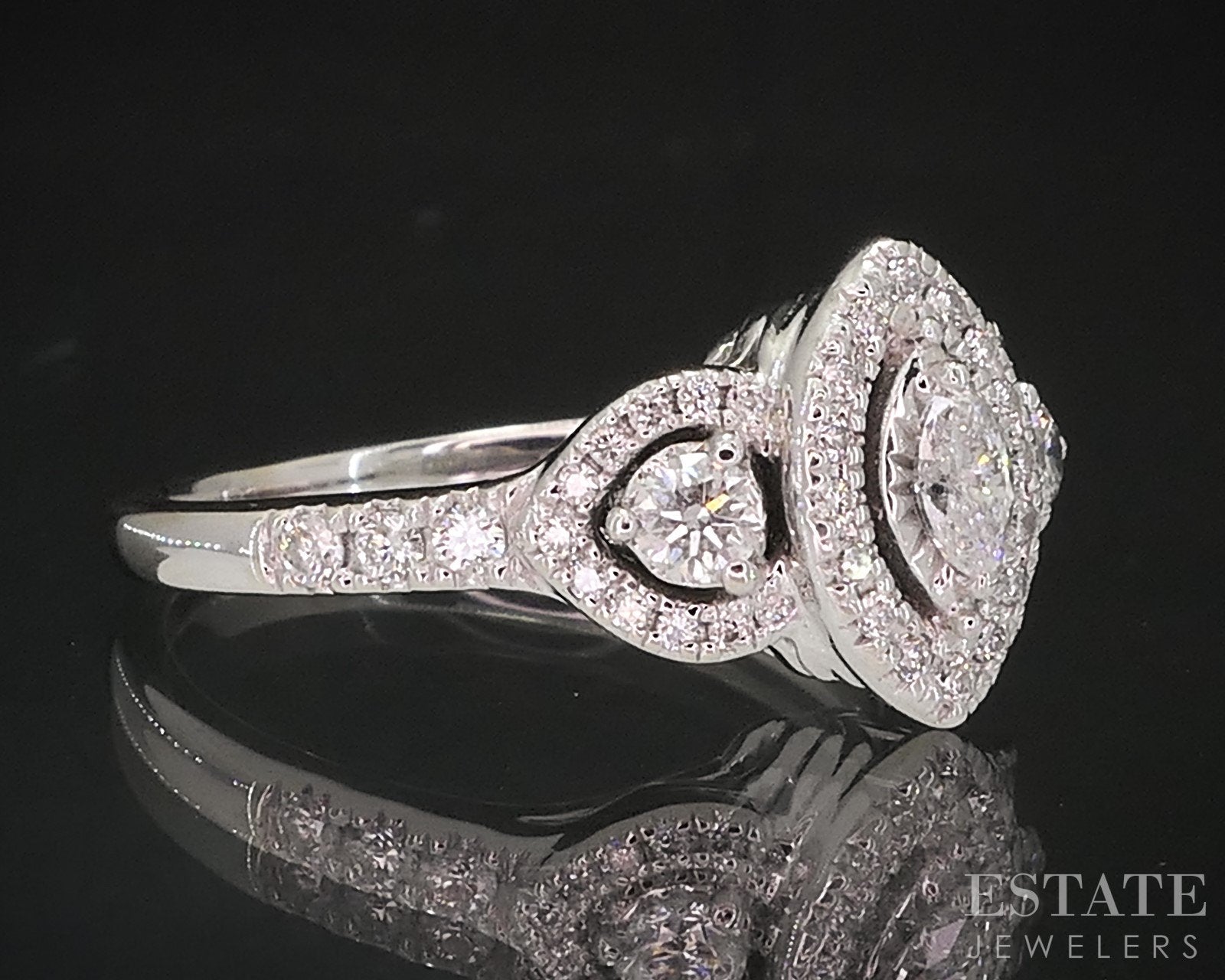 14k White Gold Marquise Natural .38ctw Diamond Halo Engagement Ring 3.7g i18932