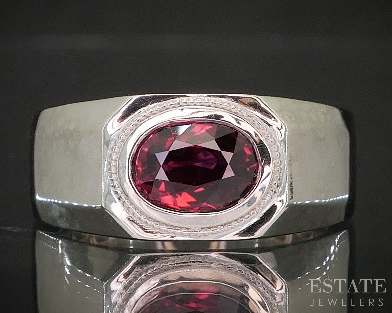 Additional Info: Elegant and striking, this refined band is crafted in luminous white gold and features a captivating oval-cut natural Ruby from Mozambique. The Ruby displays a coveted pigeon blood red color, celebrated for its vivid saturation and exceptional intensity. Set in a clean, understated design, the white gold band beautifully contrasts the Ruby’s rich hue, allowing the gemstone’s color and brilliance to take center stage. Timeless and sophisticated, this Ruby band is a powerful expression of rarity, beauty, and enduring luxury. Original appraisal values the ring at a whopping $15,800!