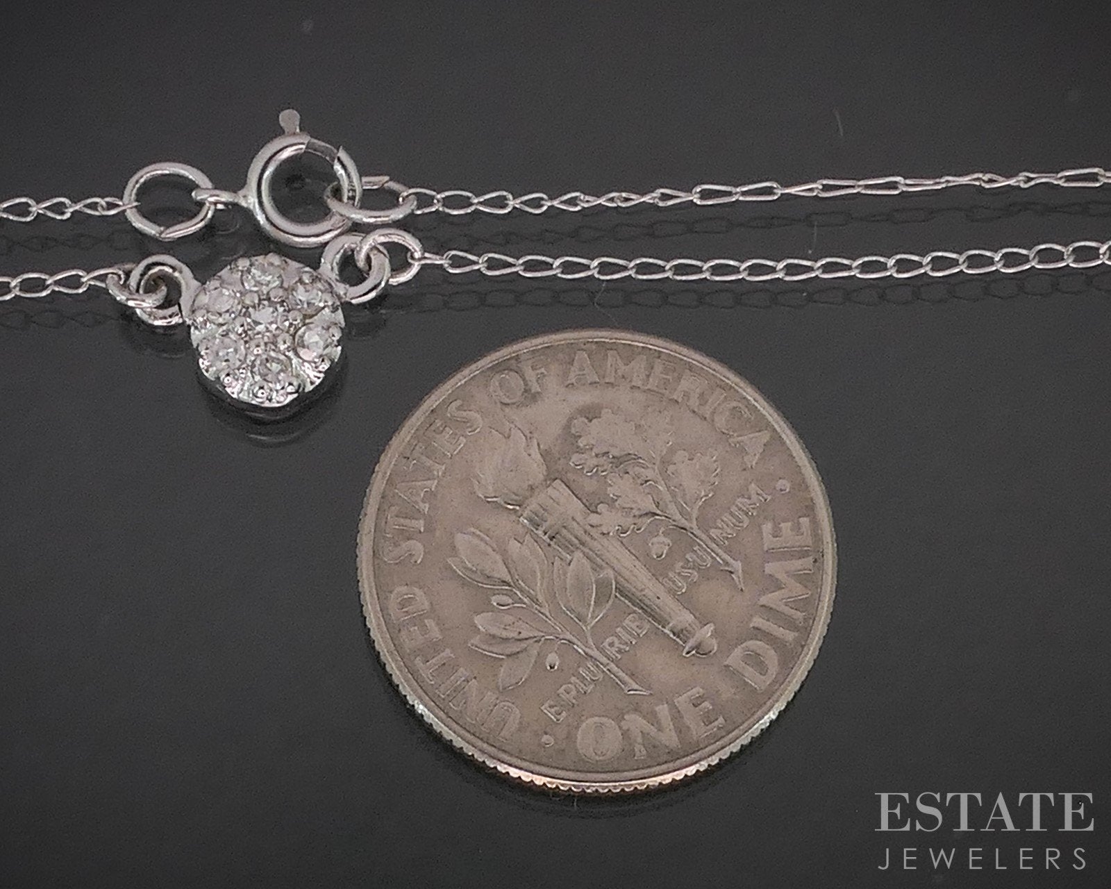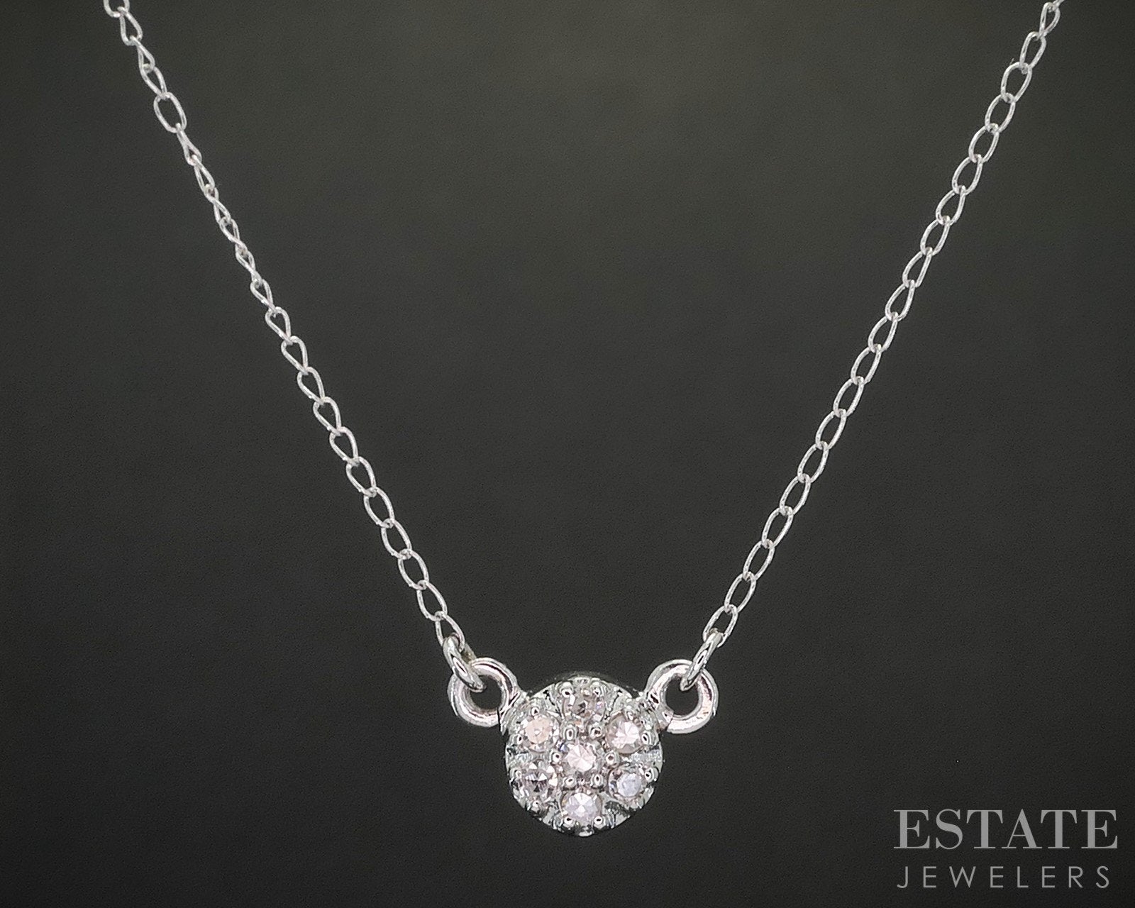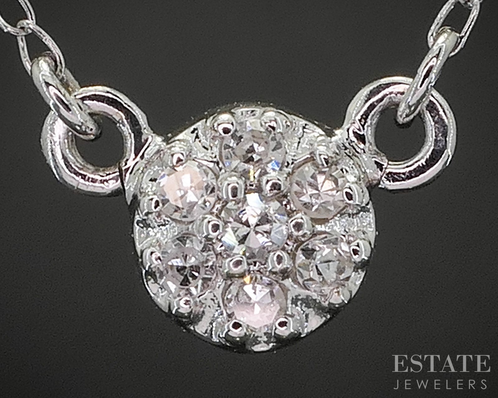 14k White Gold Natural .04ctw Diamond Cluster Ladies Necklace 0.9g 16"L i20243
