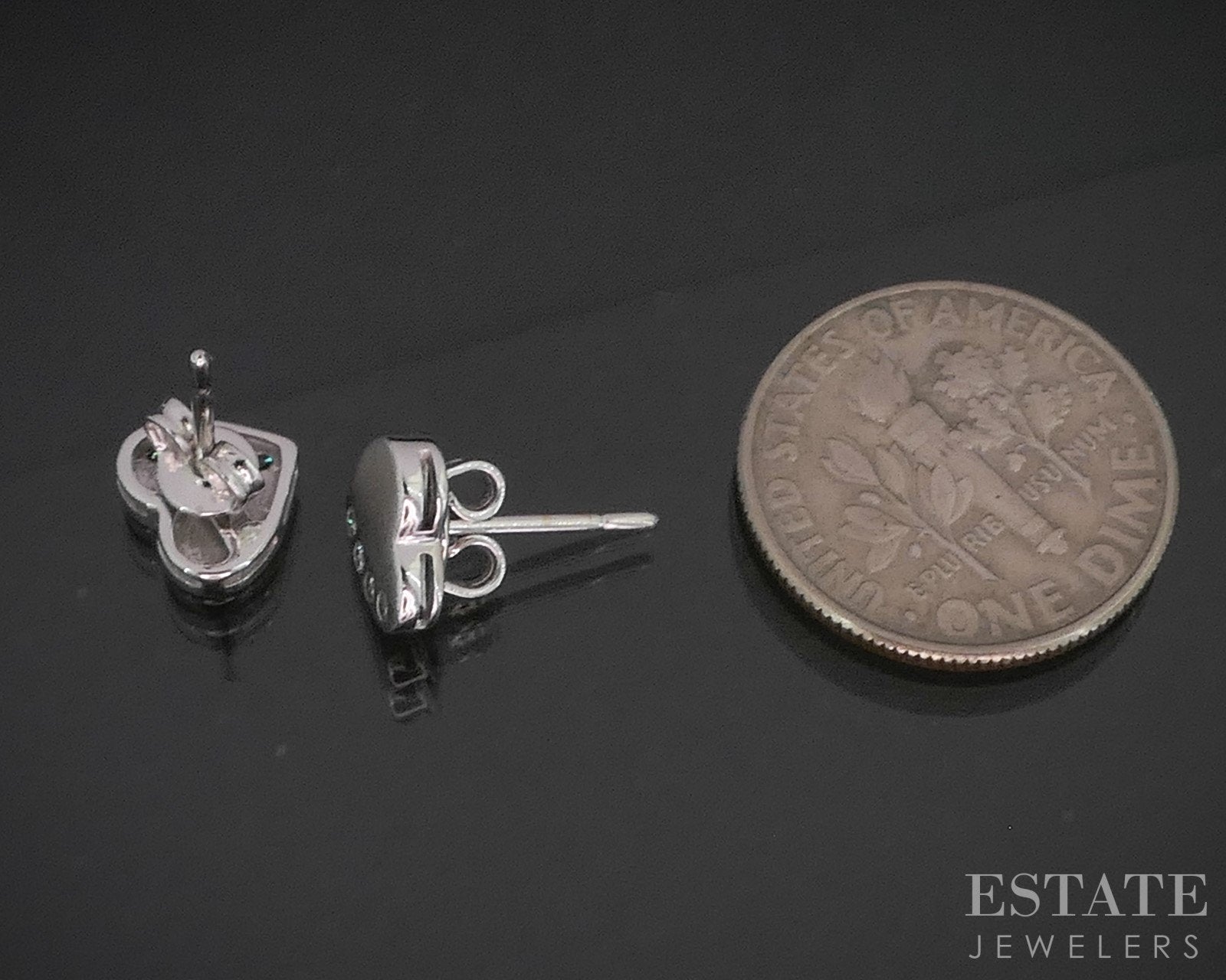 14k White Gold Natural .08ctw Diamond Heart Stud Earrings 1.6g i20105b