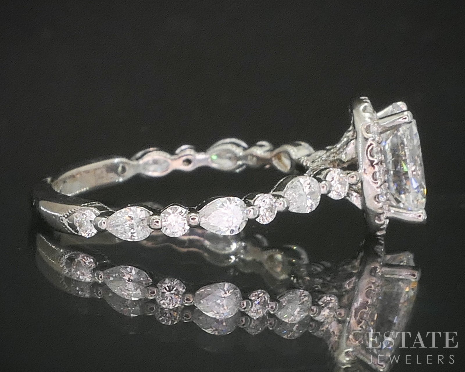 Diamond Information: Approximately 1.46ctw including the main 1.01ct oval cut Diamond, SI2 clarity with E color to it.
