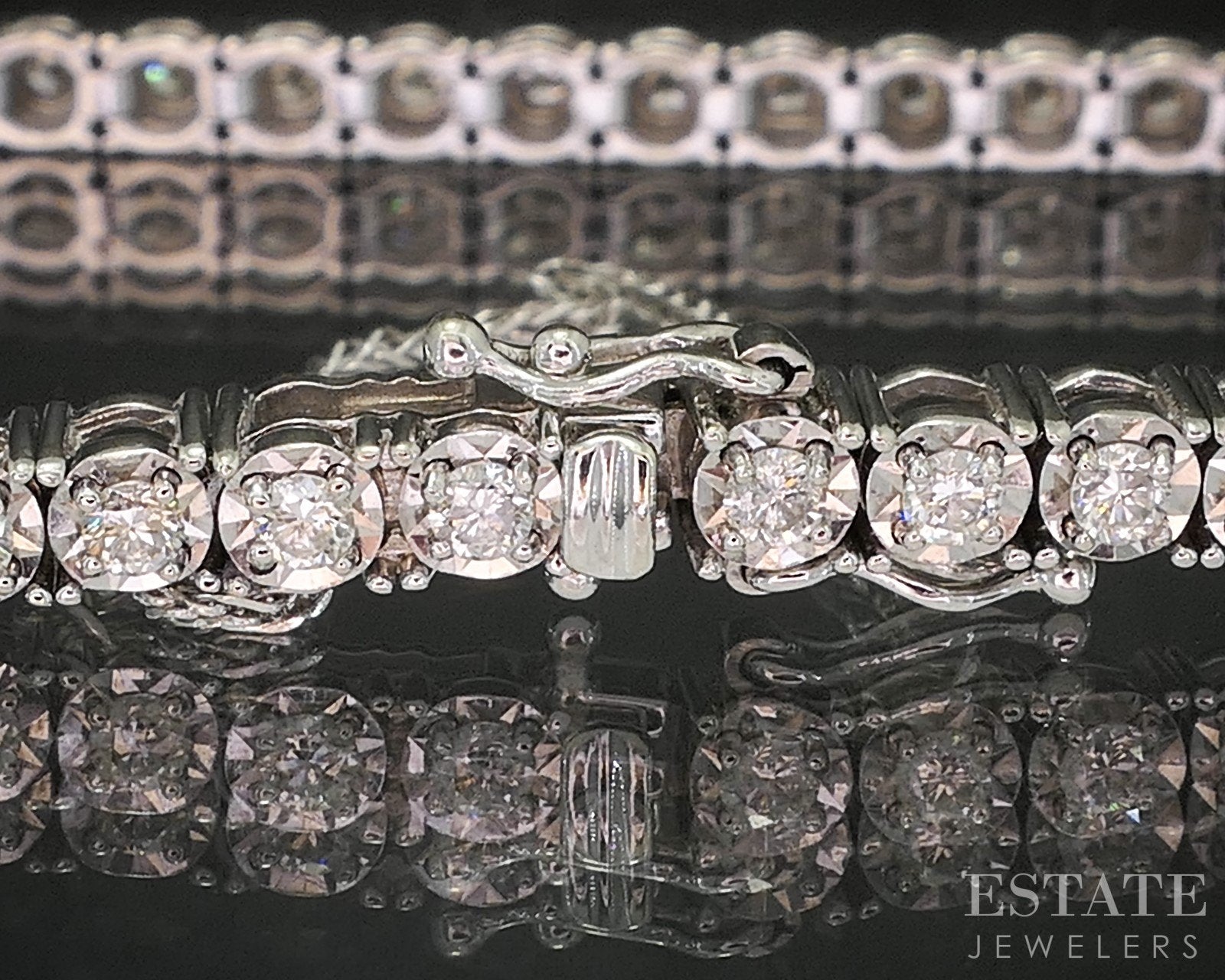 Additional Info: Lovely white gold setting beautifully complements the brilliant sparkle of the Diamonds, creating a piece that’s both classic and sophisticated. Set in a seamless, continuous line, the Diamonds are individually placed in 4 prong links to catch and reflect the light from every angle, offering a dazzling display of brilliance with each movement.