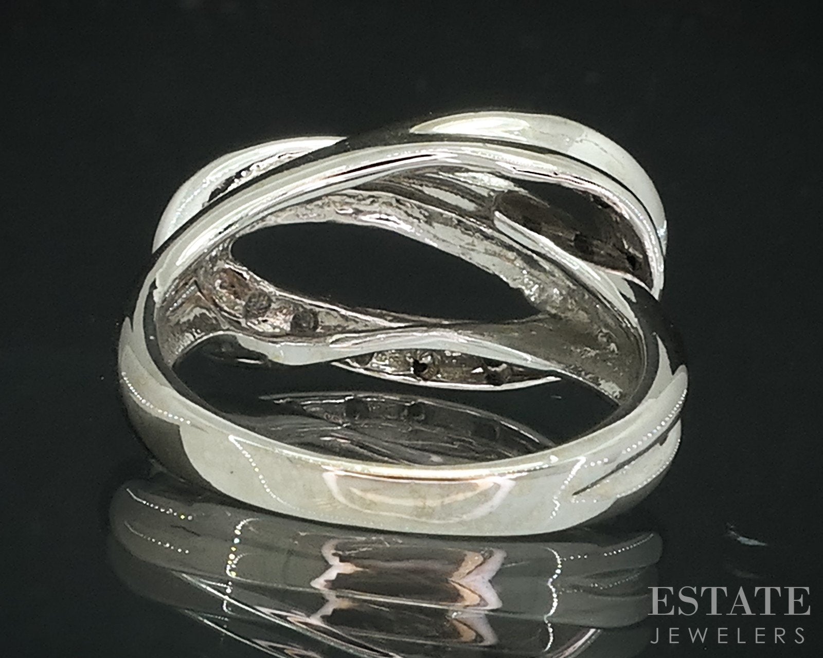 14k White Gold Natural .11ctw Diamond Free Form Ladies Band Ring 4.8g i18104